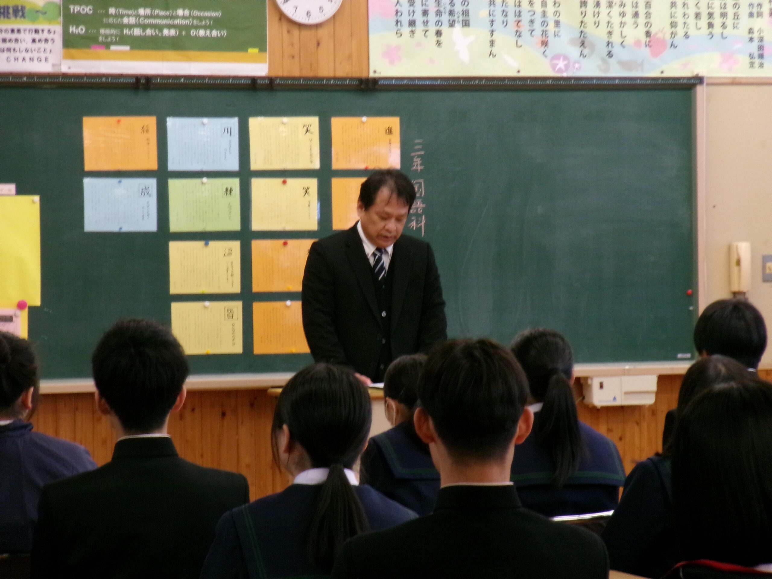 今週は学校公開週間で、6時間目の授業参観には多くの保護者の方の参観がありました。1,3年生は道徳、2年生は体育の授業を参観していただきました。その後学級懇談では各学級(学年)ごとに入試のこと、学校生活のことなど学年団の職員と長時間にわたっての意見交流ができました。さらに、PTA役員の方には残っていただき、PTA運営員会を行い、今年度のこれまでの活動を振り返り、残り半年弱の活動を見通したり、次年度に向けての確認などをしています。PTA活動は、子どもを真ん中に据え、学校と保護者がつながる大切な機会です。今後ともよろしくお願いいたします。