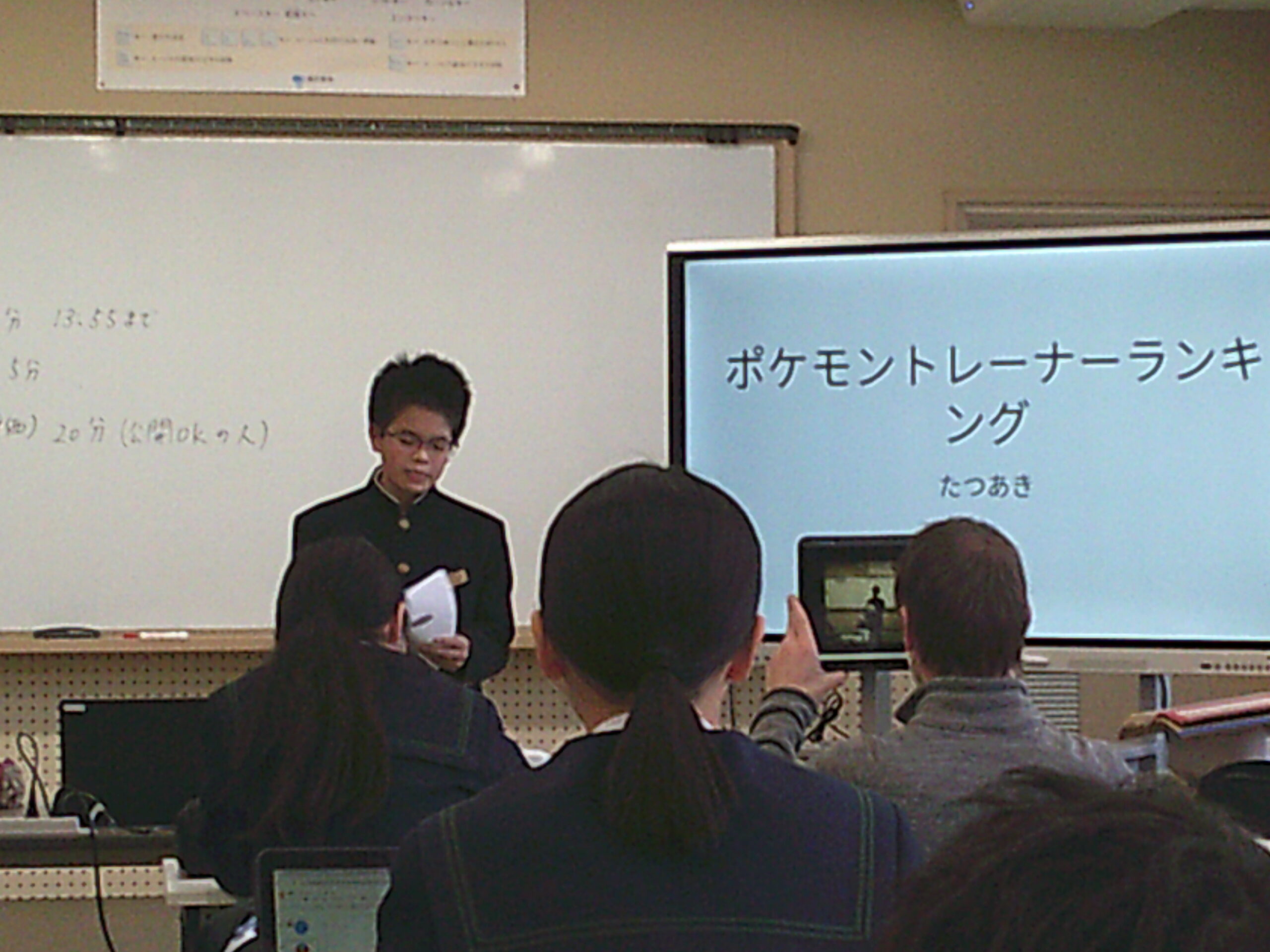 生徒会役員に立候補者の立ち合い演説会があり、その後投票が行われました。緊張した面持ちで演説の順番を待っていましたが、生徒の前に立つと堂々とした態度ではっきりと思いを伝えることができました。