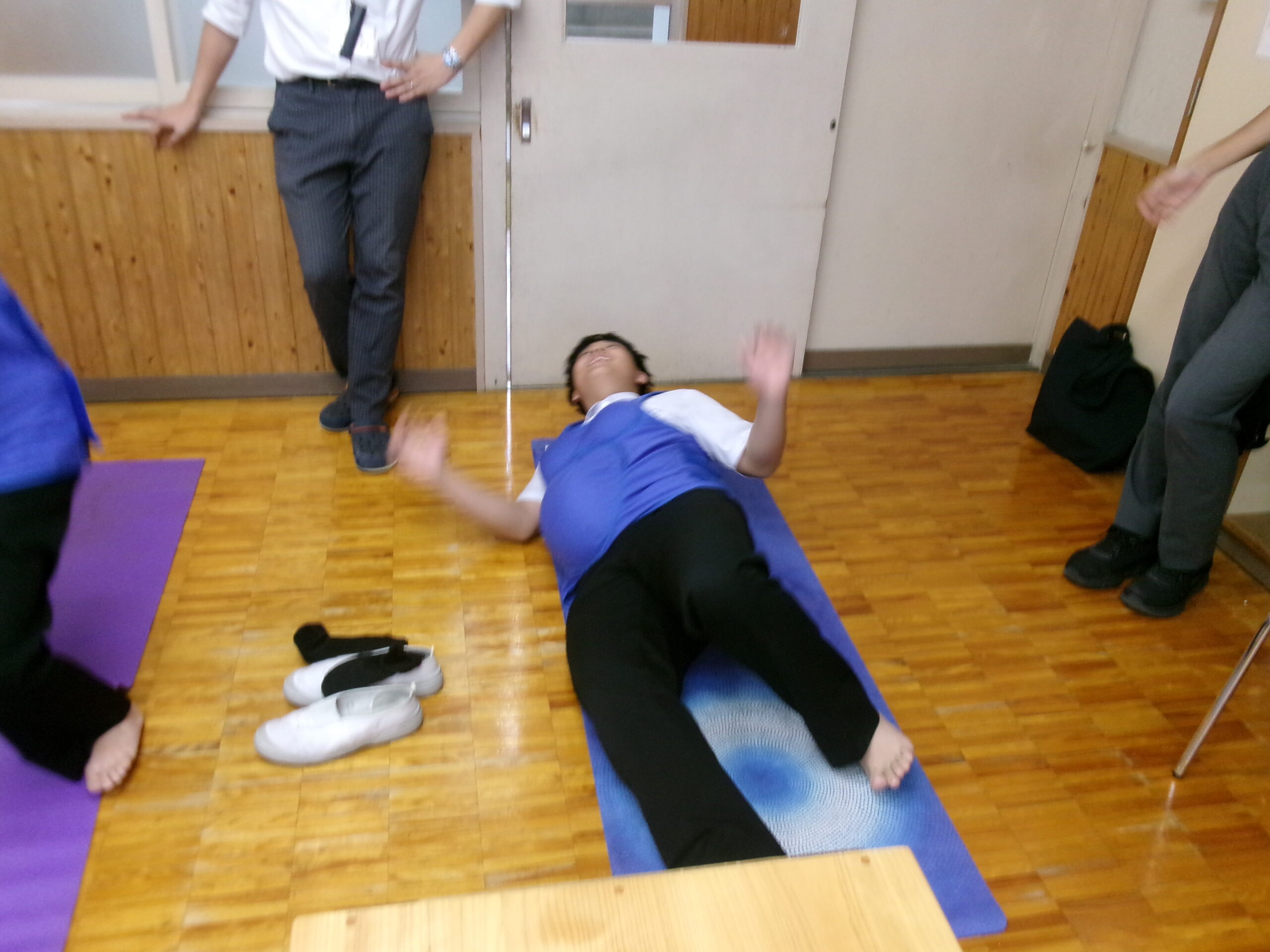 消防署職員の方に、心臓マッサージやAEDの使用方法などを指導していただきました。