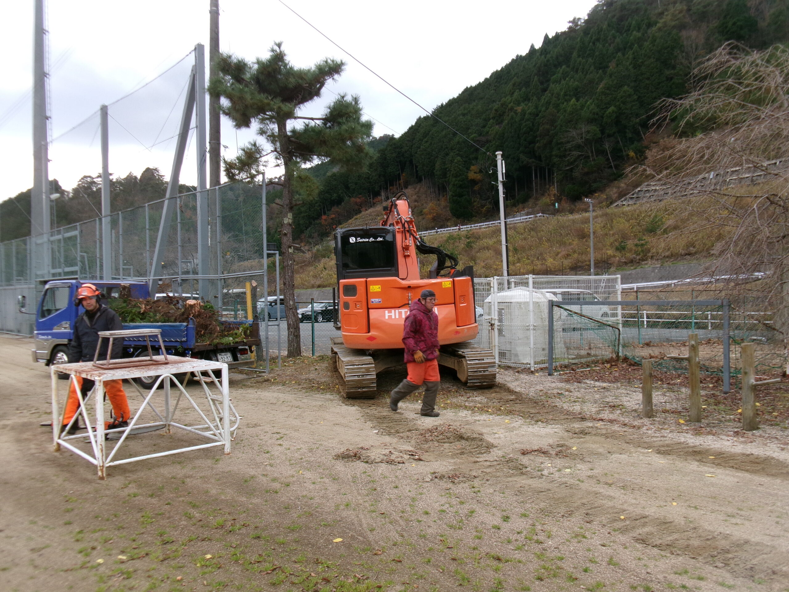 R7.12.3 グランドの横で工事が始まっています