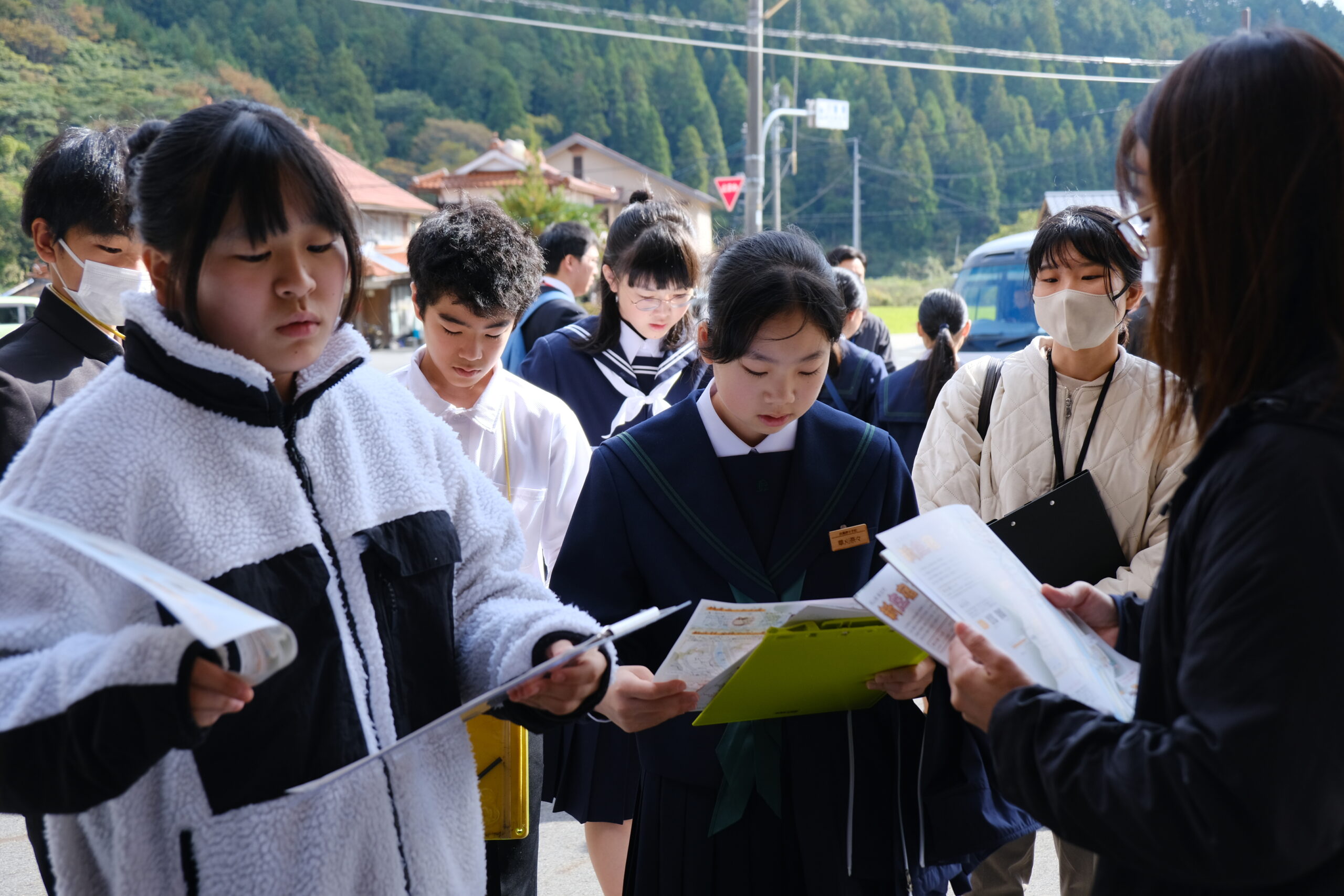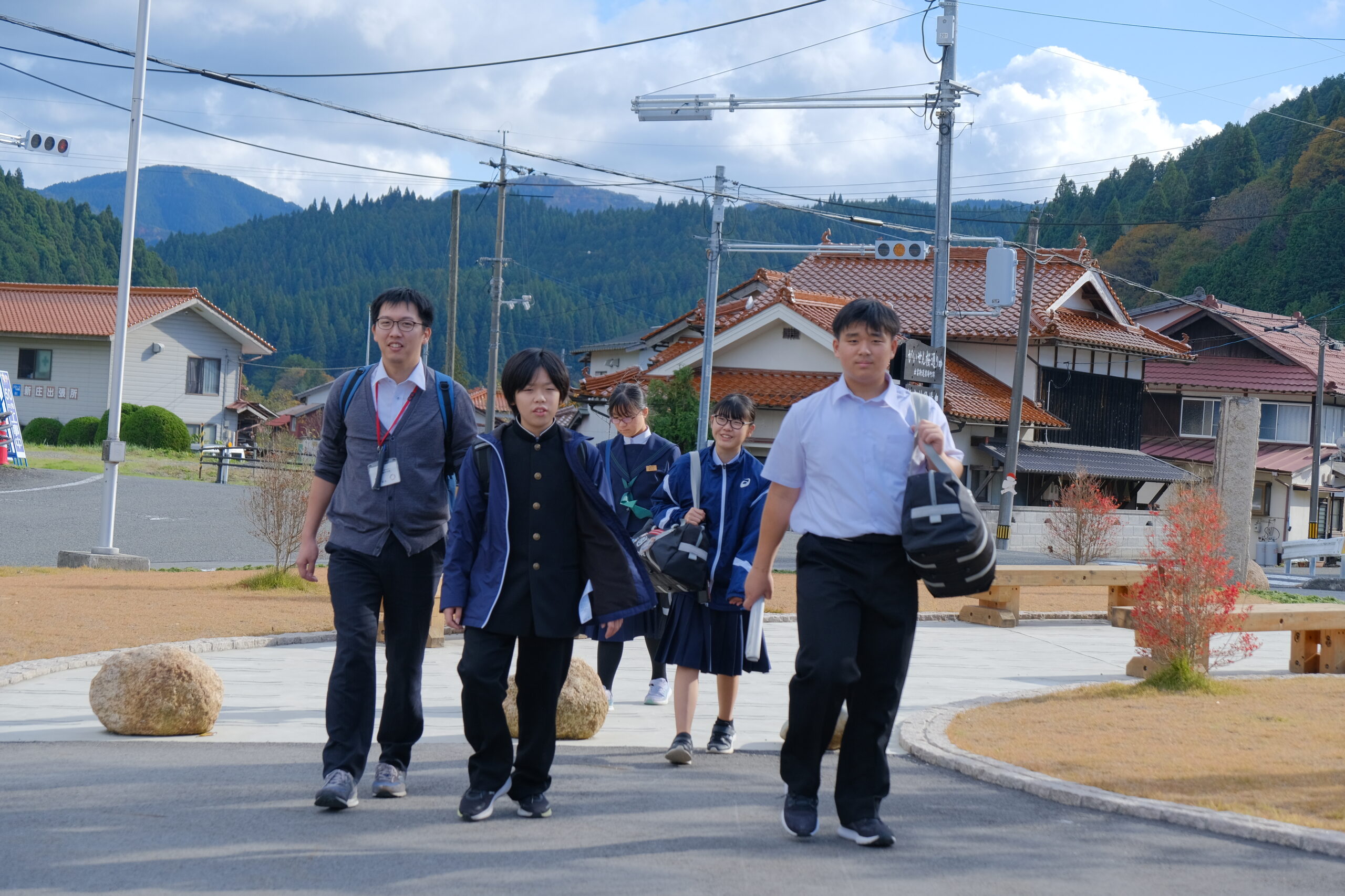 今日の1年生は、朝から1日かけて、村バスを利用して新庄村を訪問しました。この訪問は「あわくらみらい学」の一環で、岡山県内で2つしかない「村」を訪れ、西粟倉との違いや村の活性化に向け工夫していることなどを、各探究グループごとに、直接見て回り、時にはインタビューをして、今後の自身の探究に役立てる目的で行われています。天候にも恵まれ、穏やかな日差しの中、1日しっかり新庄村を見て回りました。今後、学習発表会でのプレゼンに追加修正しながら、「おかやま学び大賞」へのエントリーへと向かう予定です。