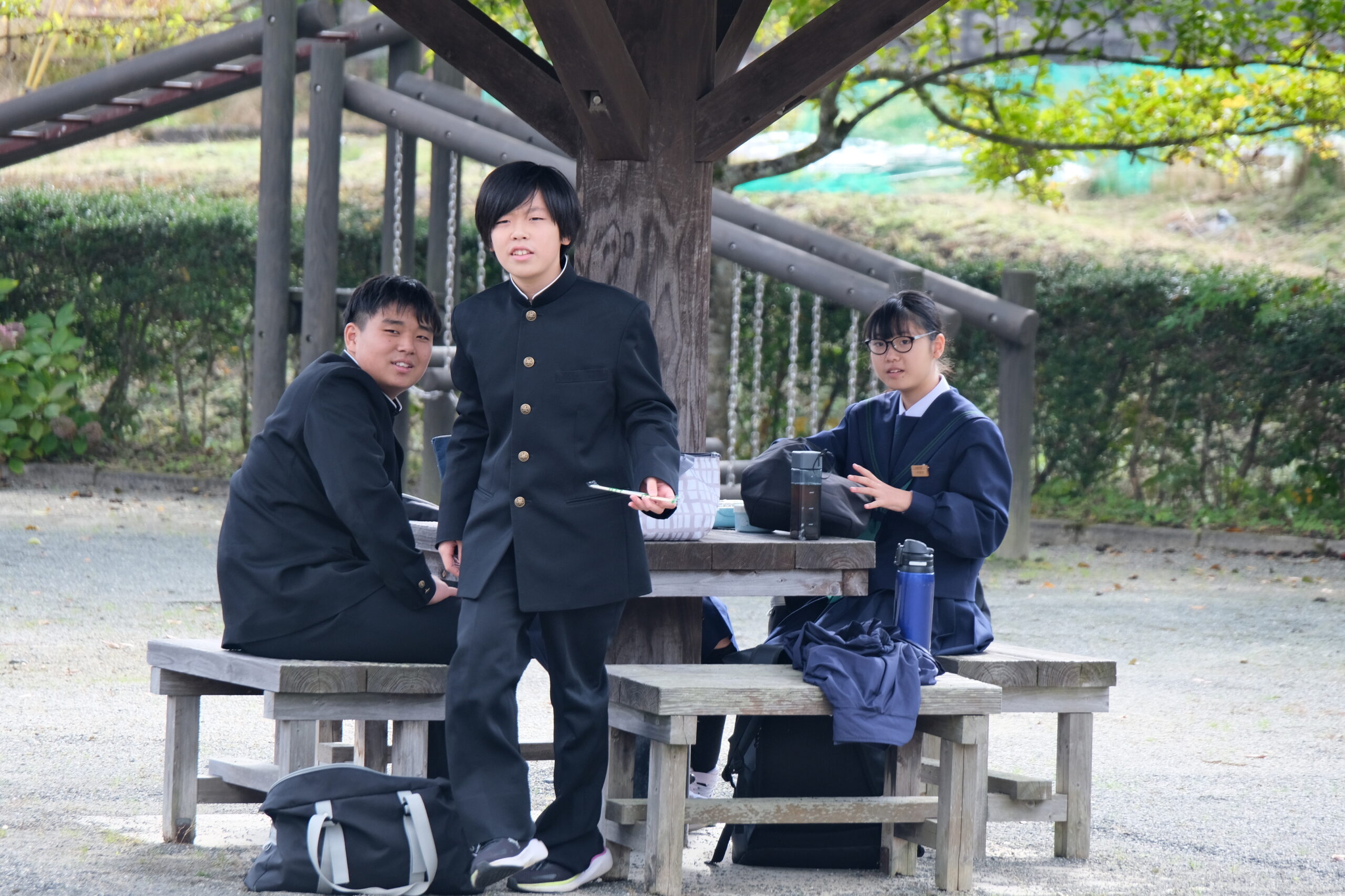お天気にも恵まれ、生徒はおもいおもいの場所でお弁当給食をいただきました。