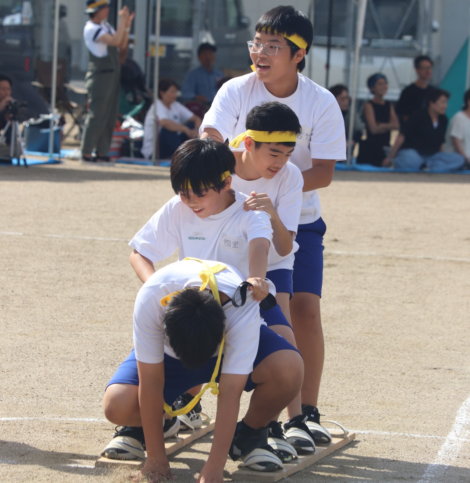 中学校だけの全校練習の時間には、中学校種目の練習を行っています。障害物リレーは練習をすればするほどタイムが上がる種目です。それだけ、練習に熱が入ります。真剣に練習をしている姿を見ていると「楽しみながら」笑利(しょうり)を目指している姿を感じます。運動合まで約10日あります。練習を頑張るとともに、ケガをしないよう、準備体操をしっかり各自で行ったり、ストレッチをしたり、食事や睡眠を整えたりと、体調管理もしっかりしていきましょう。