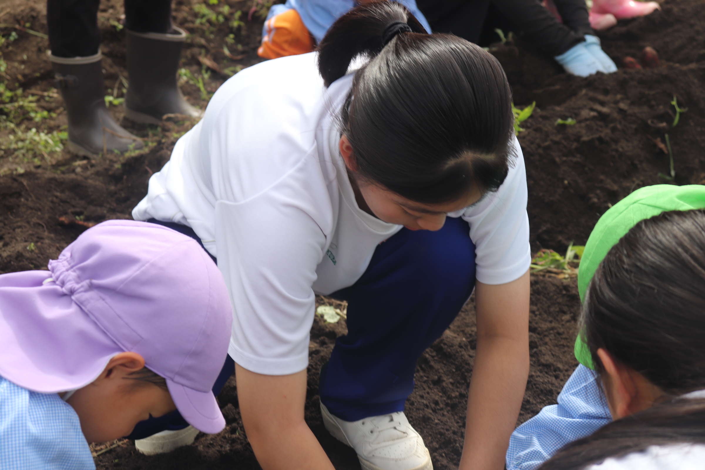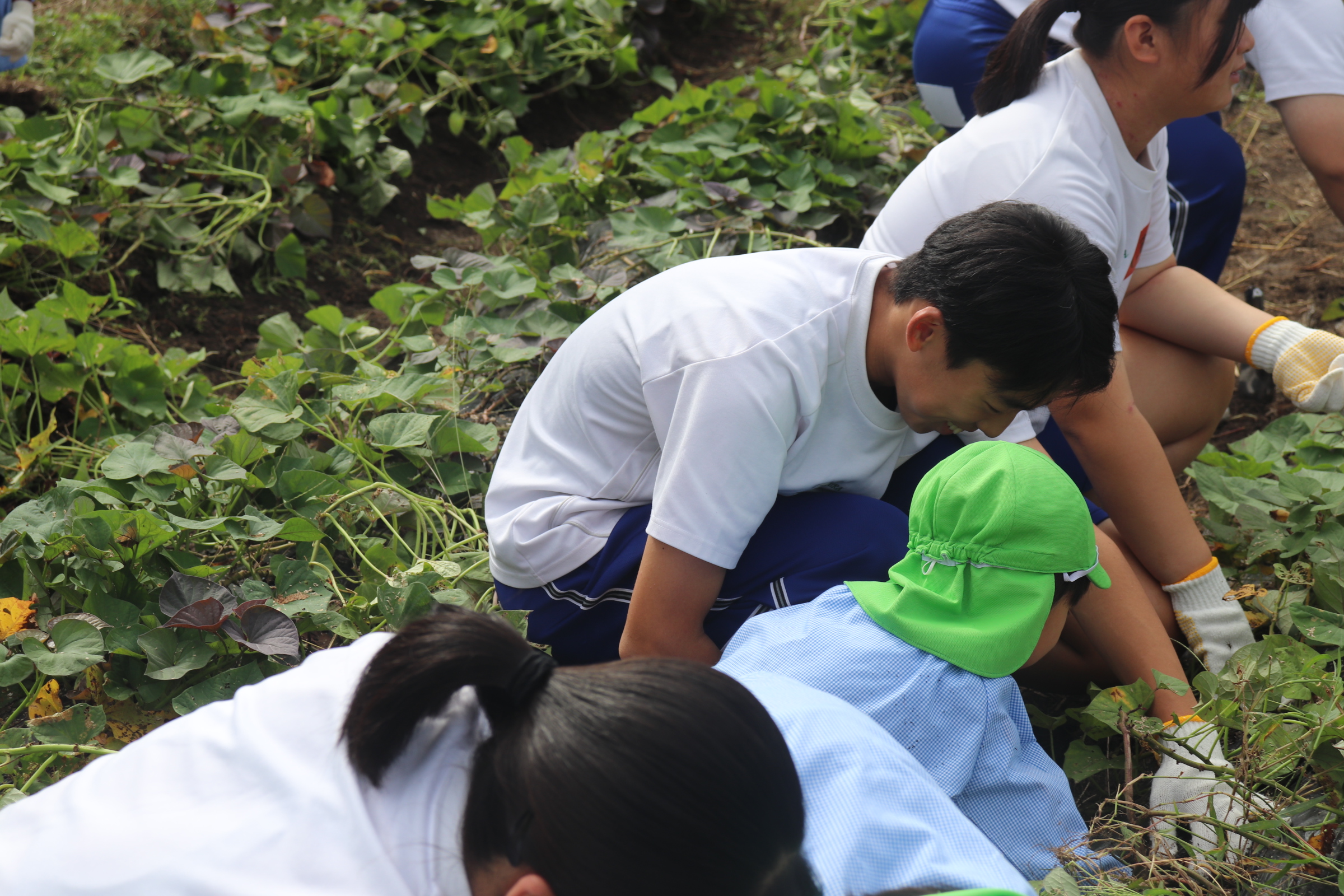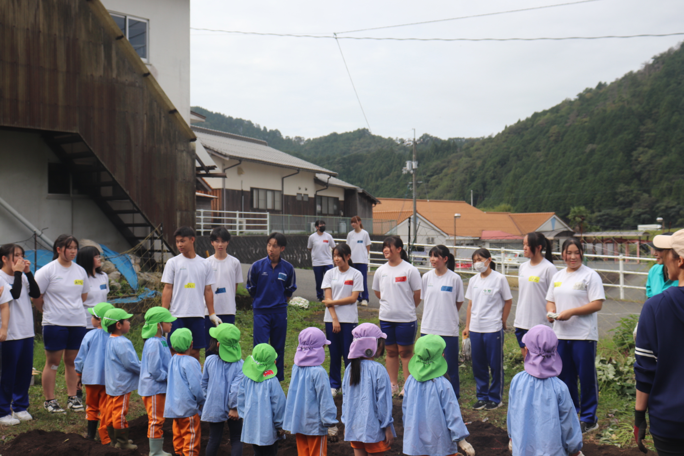 3年生の2時間目の家庭科では、西粟倉幼稚園の園児とのふれあい体験です。今日のふれあい行事は「サツマイモほり」です。天候にも恵まれ、短時間に多くのイモの収穫ができました。今日収穫したイモは少しねかせて、今月末に改めて園児とともに「焼き芋パーティー」ができたらと計画しています。合同運動会の時にも顔を合わせ、アピールのダンスを練習した園児とともにふれあいながら芋ほりをする中で、自身の成長や、これまで家族をはじめとする身近な大人に見守られながら育ったことを実感したのではないでしょうか。