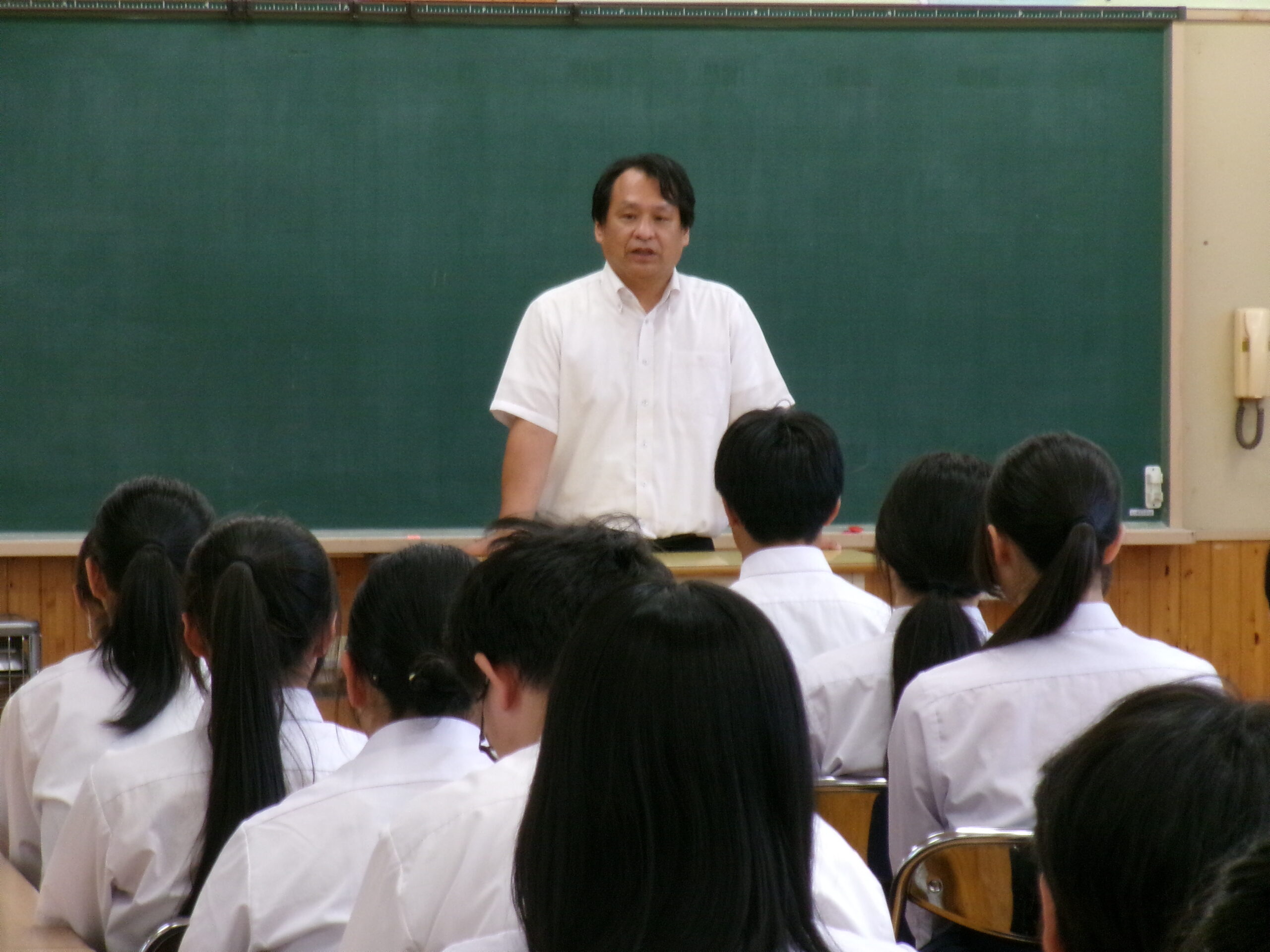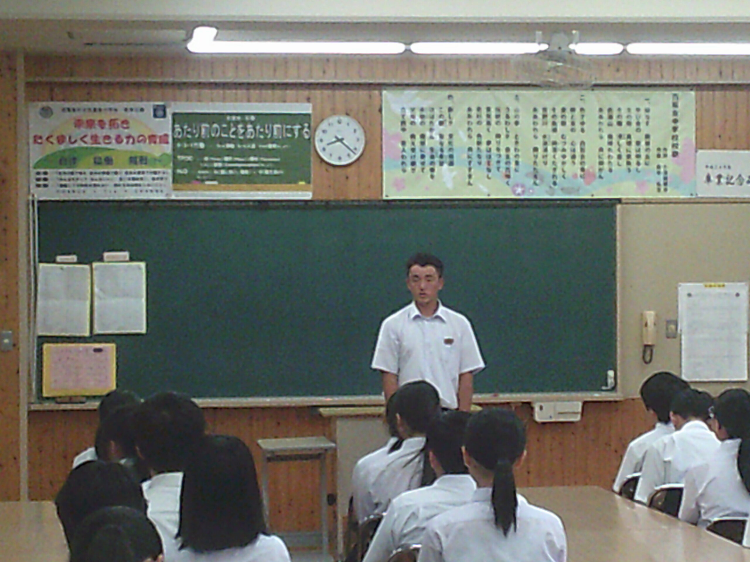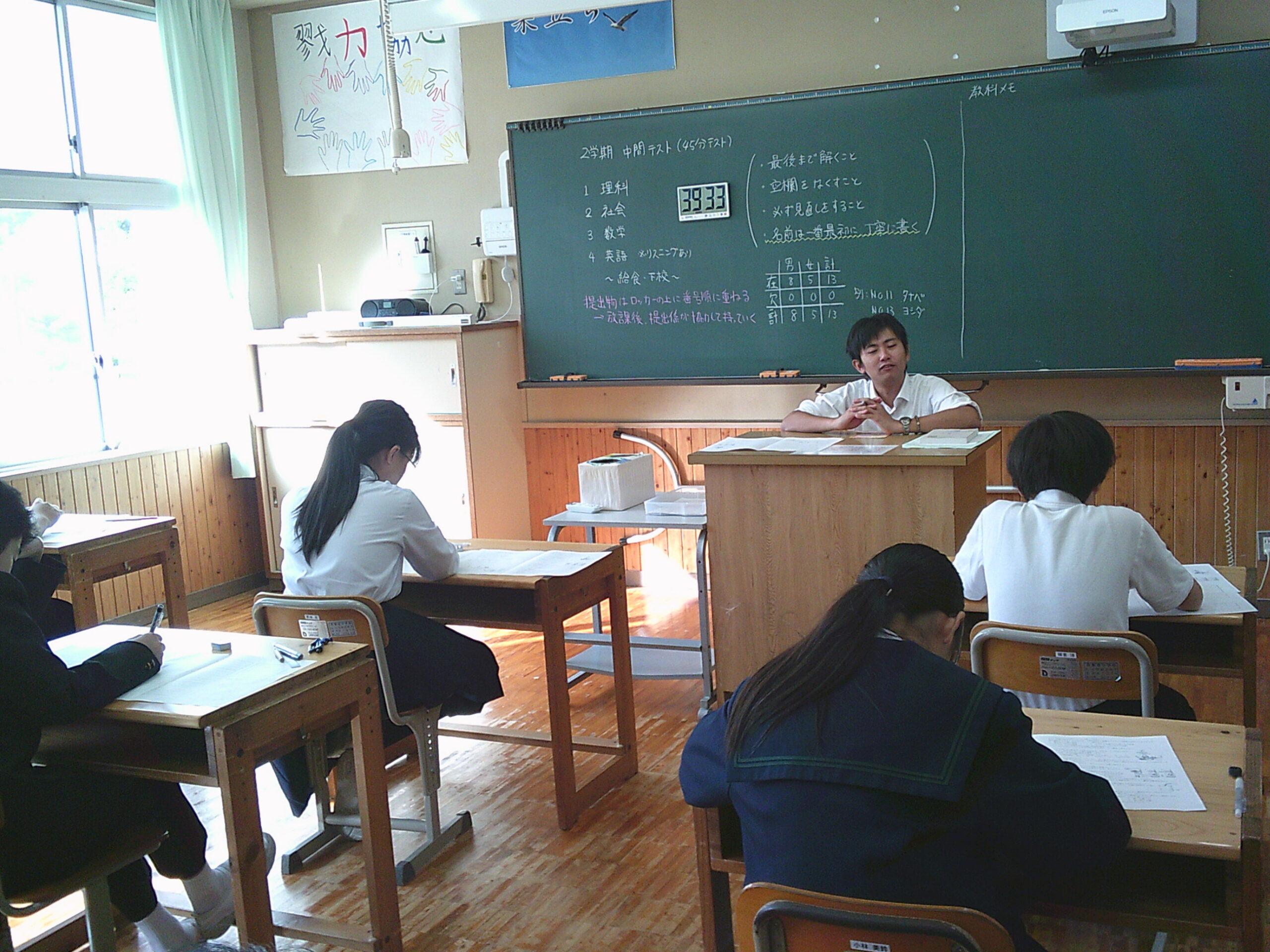 岡山大学の教育学部1回生の現地実習の一環として、本校に7名の学生が来校してくださいました。はじめに校長室で、西粟倉中学校や西粟倉村の特徴や頑張っていることなどを説明した後に、実際に授業を見学し、授業を受けている生徒達の様子や授業をする先生について勉強をしました。最後、質疑応答の時間は、参加された7名の学生が次々と質問をされ、意欲の高さに説明していた私たちも刺激を受けました。数年後、大学を卒業し、学校現場で先生として戻ってくることを楽しみにしています。