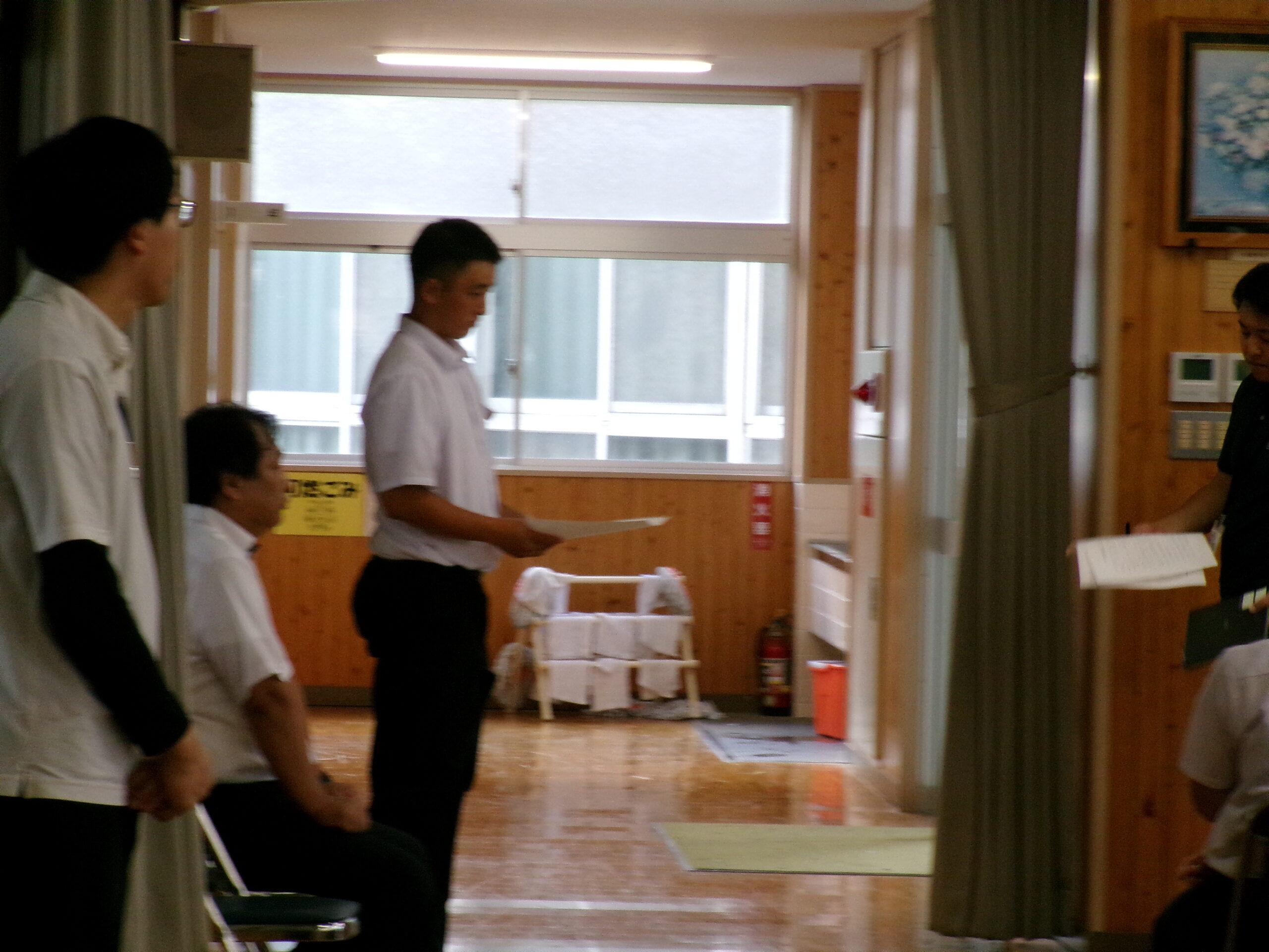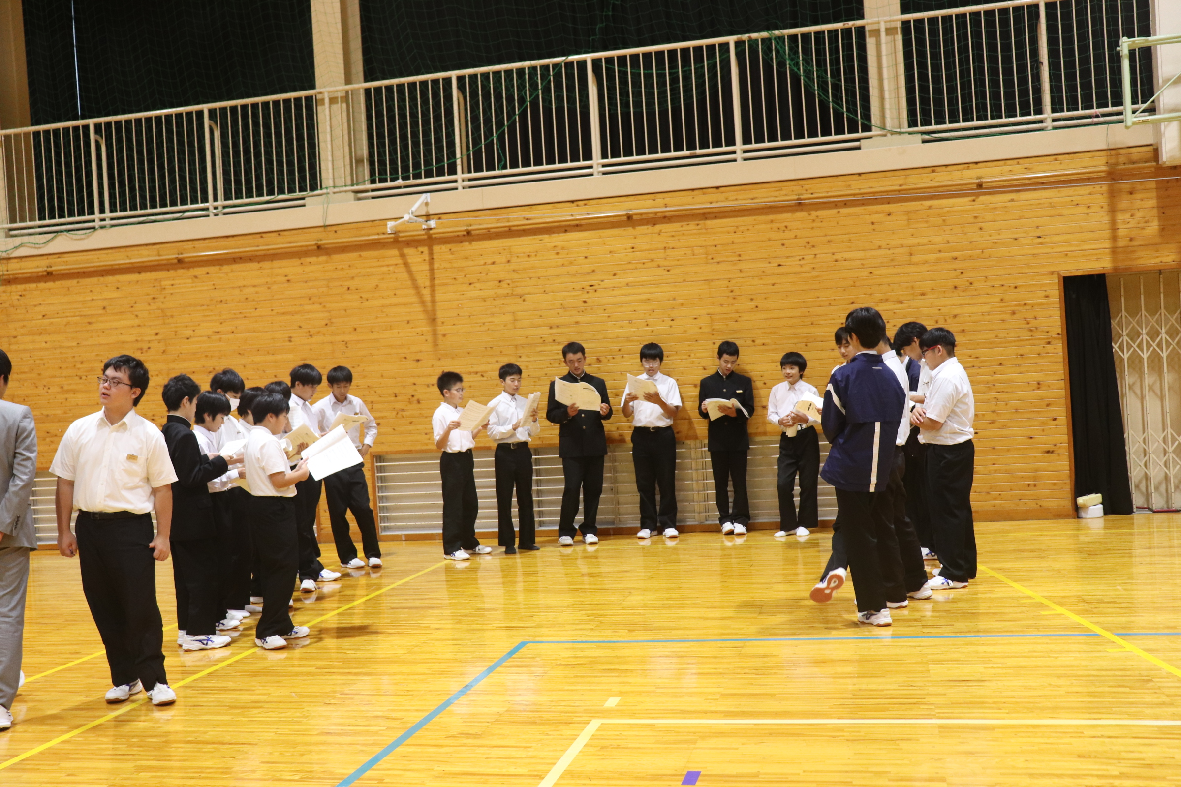 会に先立ち、美勝英地区種目別選手権の表彰伝達として卓球部男子団体と個人の表彰を行いました。その後、各部がキャプテンの掛け声の下、前に整列し意気込みを述べてくれました。大会は普段の練習の成果の発表の場です。練習でできなかったことは簡単に大会本番ではできません。これまで積み重ねた練習の成果が少しでも発揮できることを願っています。また、勝負の勝ち負けだけではなく、多くの学校の選手が集まる場でマナーや態度についても一番を目指して欲しいと常日頃思っています。部活動は技術だけではなく人間性の成長の場でもあります。前で話をしながら、うなずきながら真剣な表情で聞いている姿を見ながら、「明日は大丈夫」と実感したひと時でした。