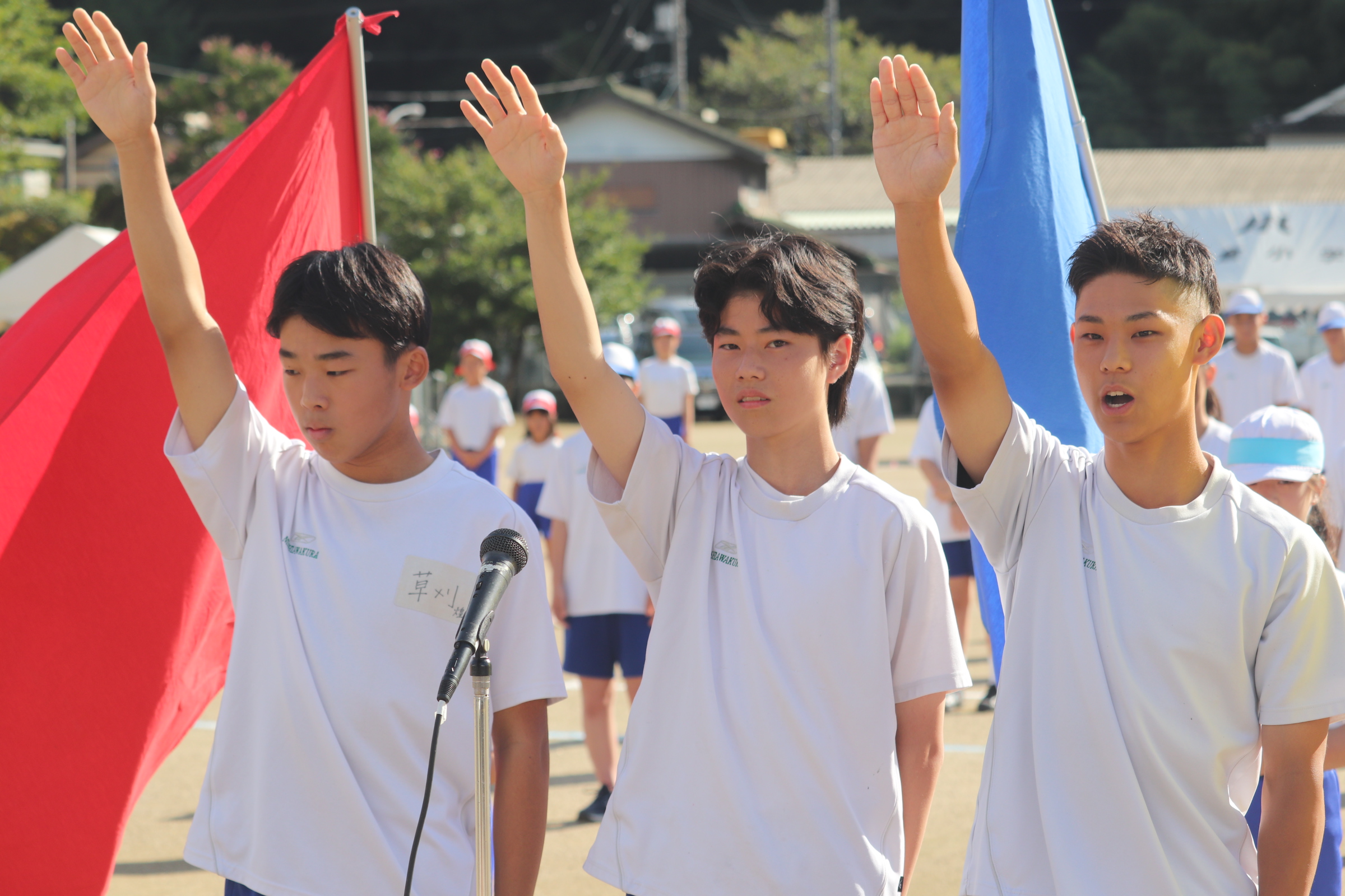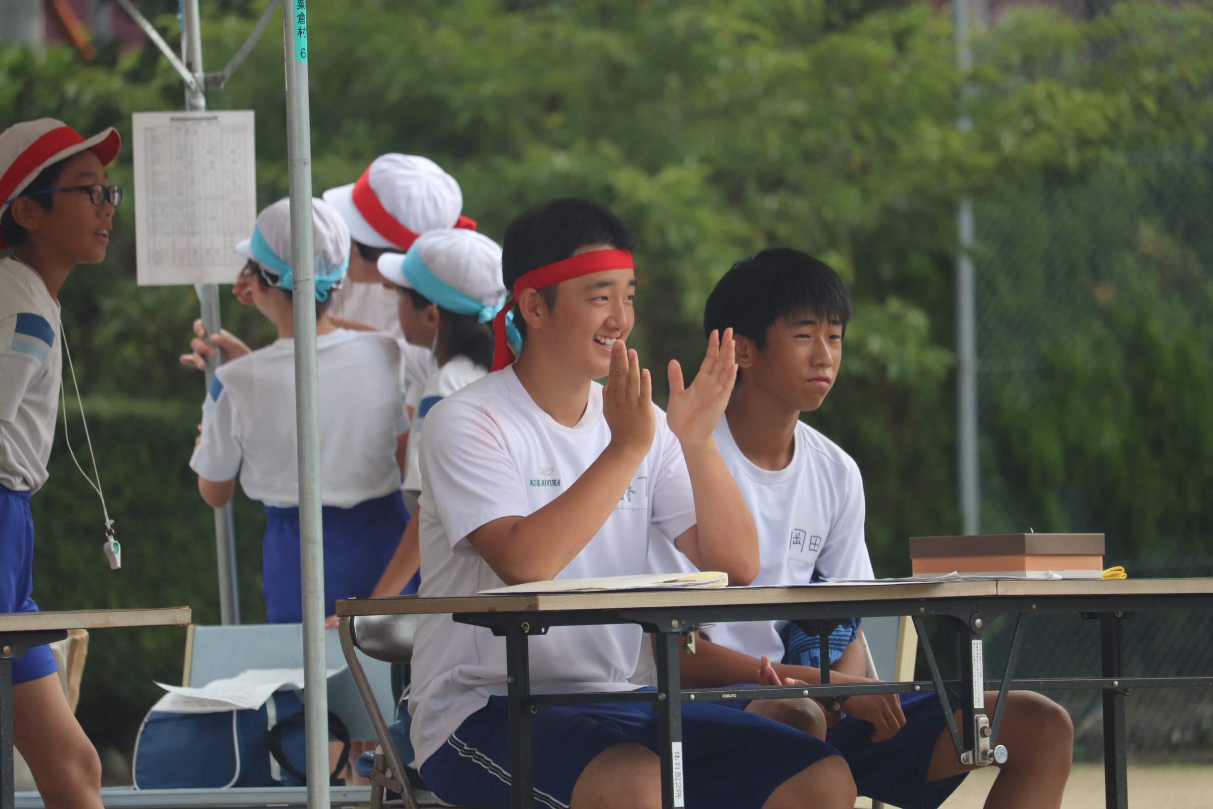 20日(土)に予定していた運動会は、天候悪化の天気予報より1日順延し、本日21日(日)に盛大に実施することができました。生徒会長の開会の言葉にもありましたが、これまで支えてくださった多くの方に感謝しつつ、「楽しむ準備はできましたか?運動会スタートです。」の掛け声で始まった運動会ですが、この日を迎えるまでに、運動会実行委員のメンバー、実行委員長、色リーダーやソーランリーダー、種目リーダーなど、多くの生徒が入れ代わり立ち代わりリーダーとなり、全校生徒だけではなく、時には小学生や幼稚園児を含めまとめあげました。また、リーダー以外の生徒も、リーダーの訴えを真剣に聞き、より良い運動会にしていこうと心が一つにまとまっていたように感じます。放送機器の調子が悪かったり、途中思いがけない雨が降ったりしましたが、アクシデントにも負けず、素晴らしい運動会を演じきりました。閉会式で小学校の児童長の言葉にもありましたが、「今回学んだことをどのように生かせるか」を今後考え、さらに成長した皆さんの姿を見たいと実感した1日でした。