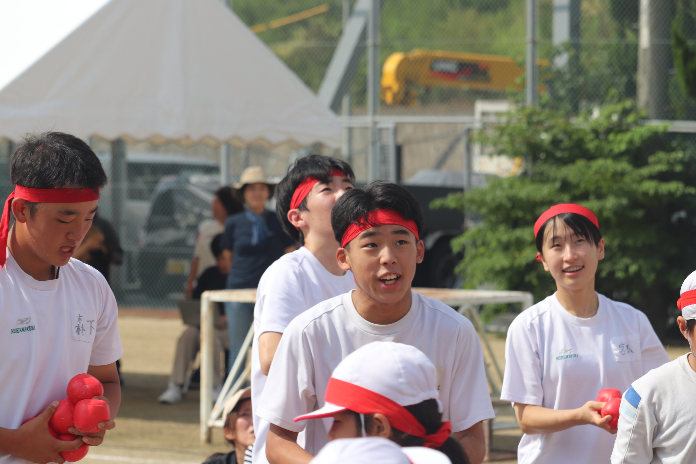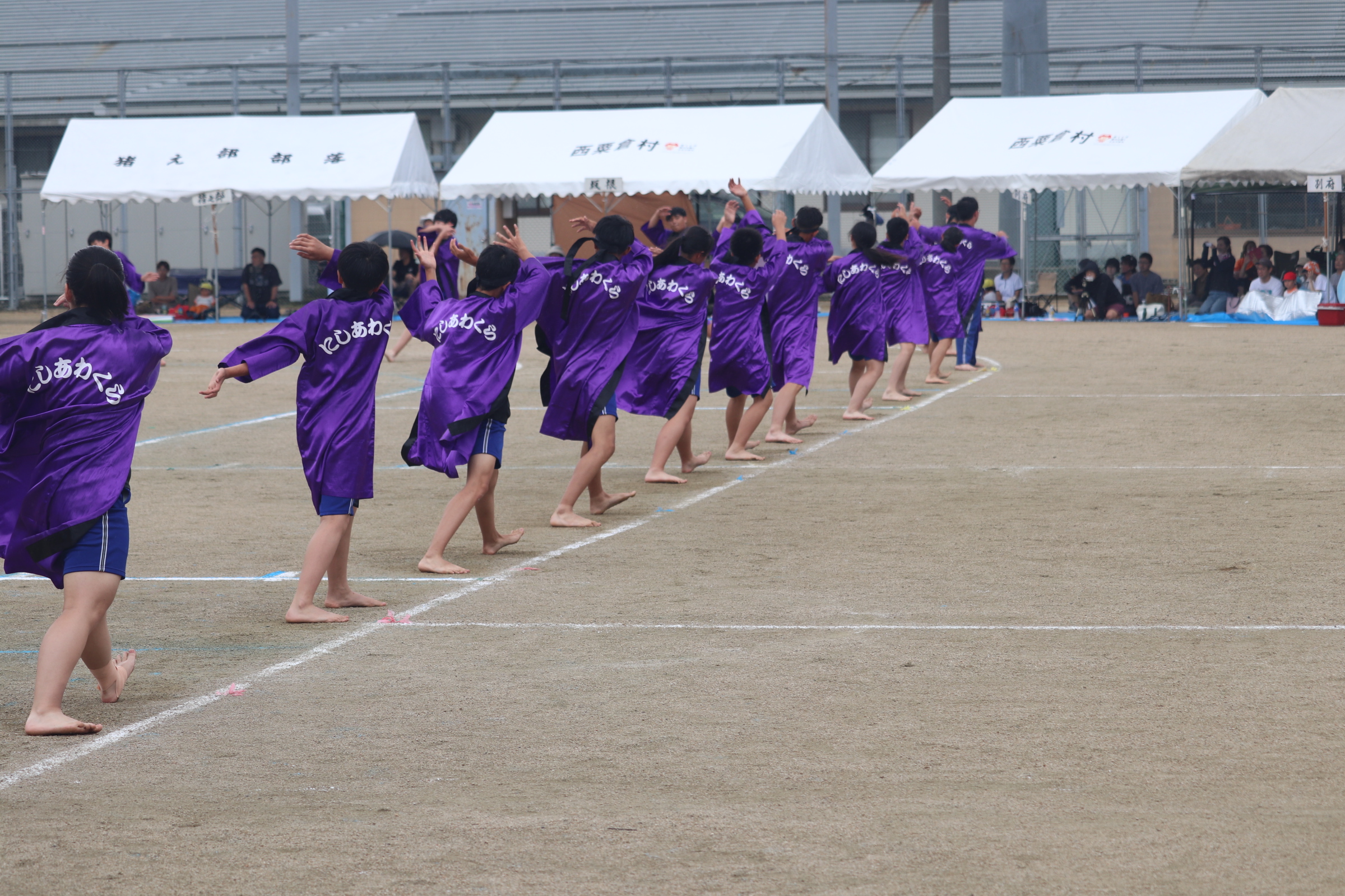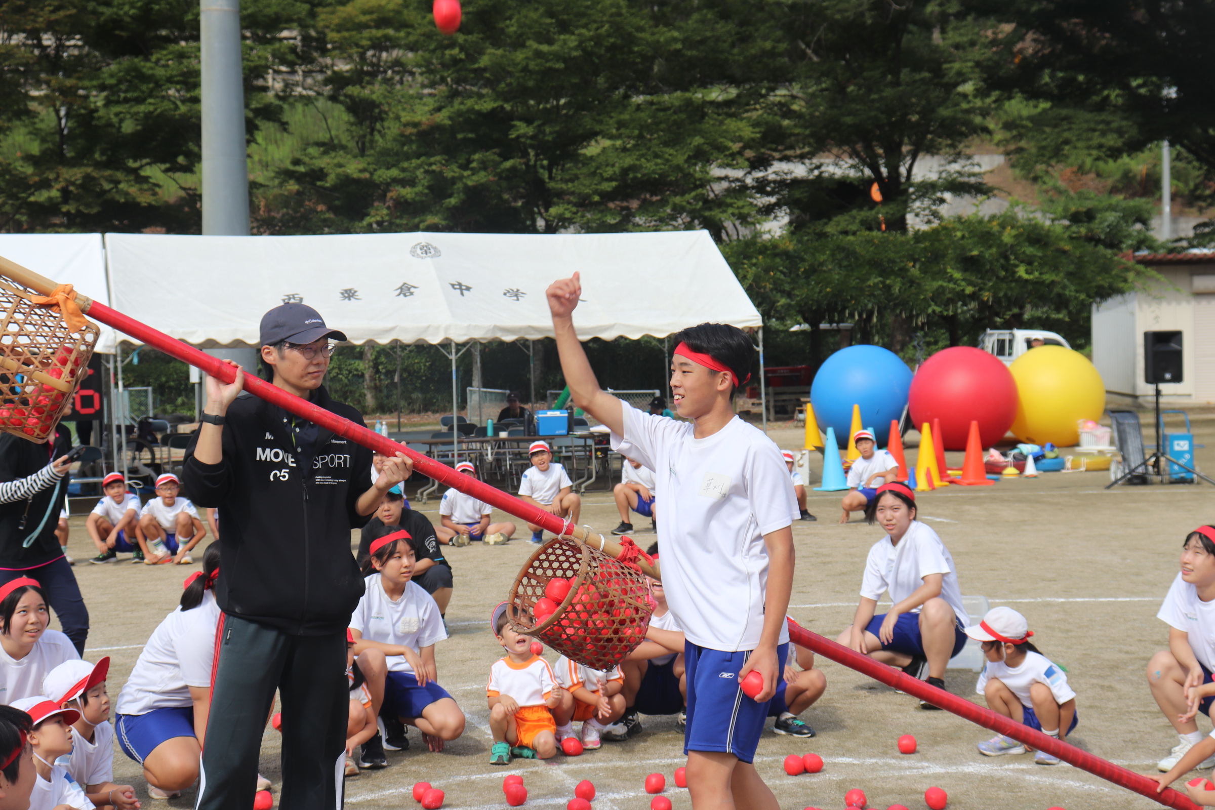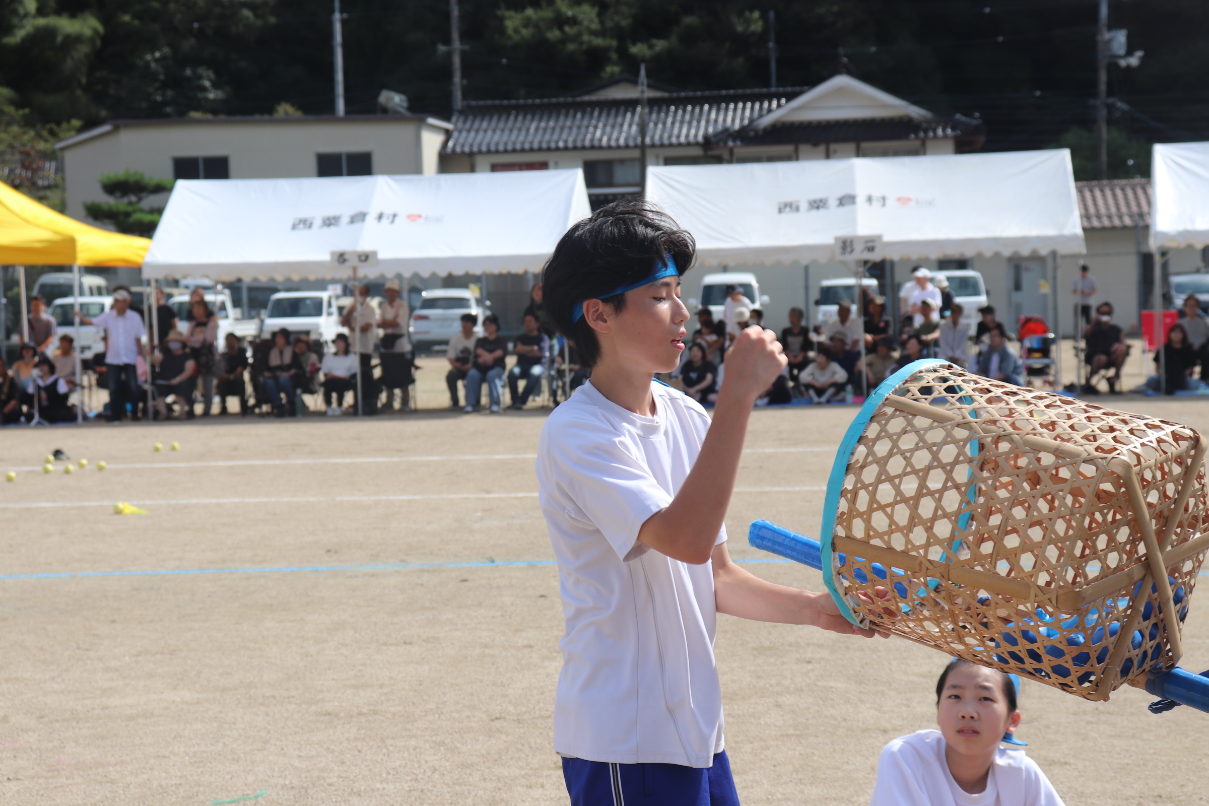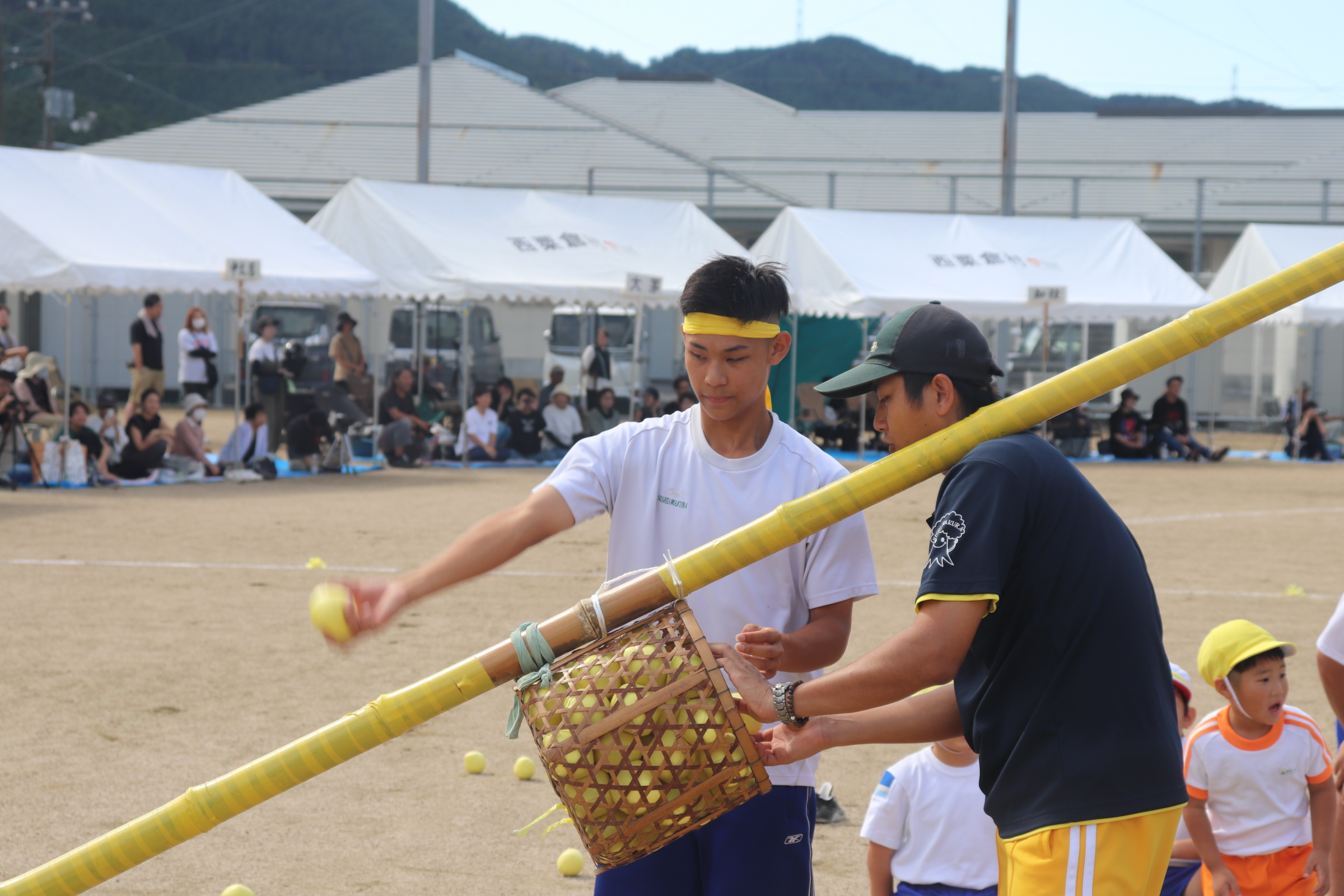 西粟倉村ならではの幼・小・中合同運動会が、晴天の下で開催されました。幼稚園児や小学生に接する優しい姿と、迫力ある演技や真剣に競技に取り組む姿を見せてくれました。