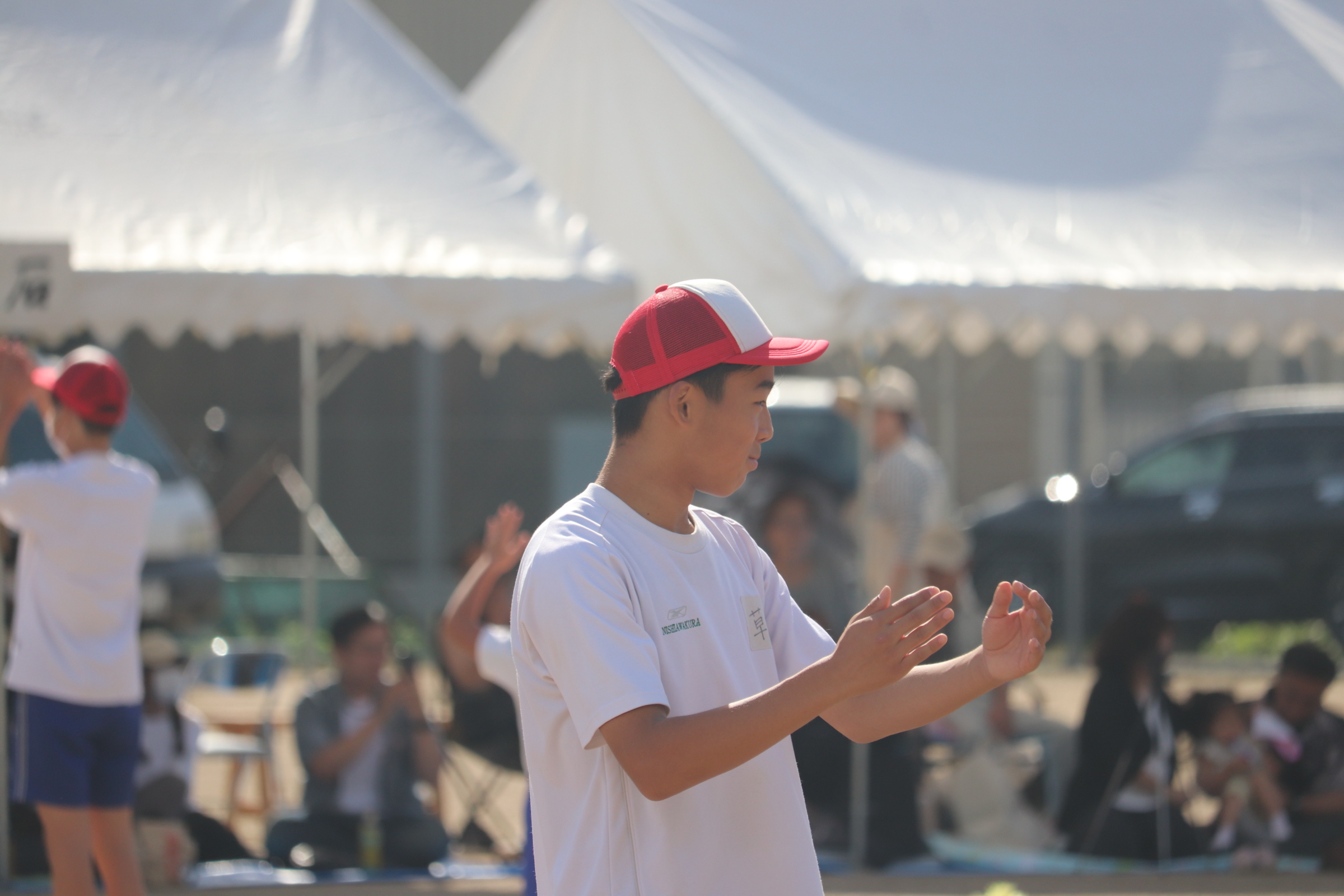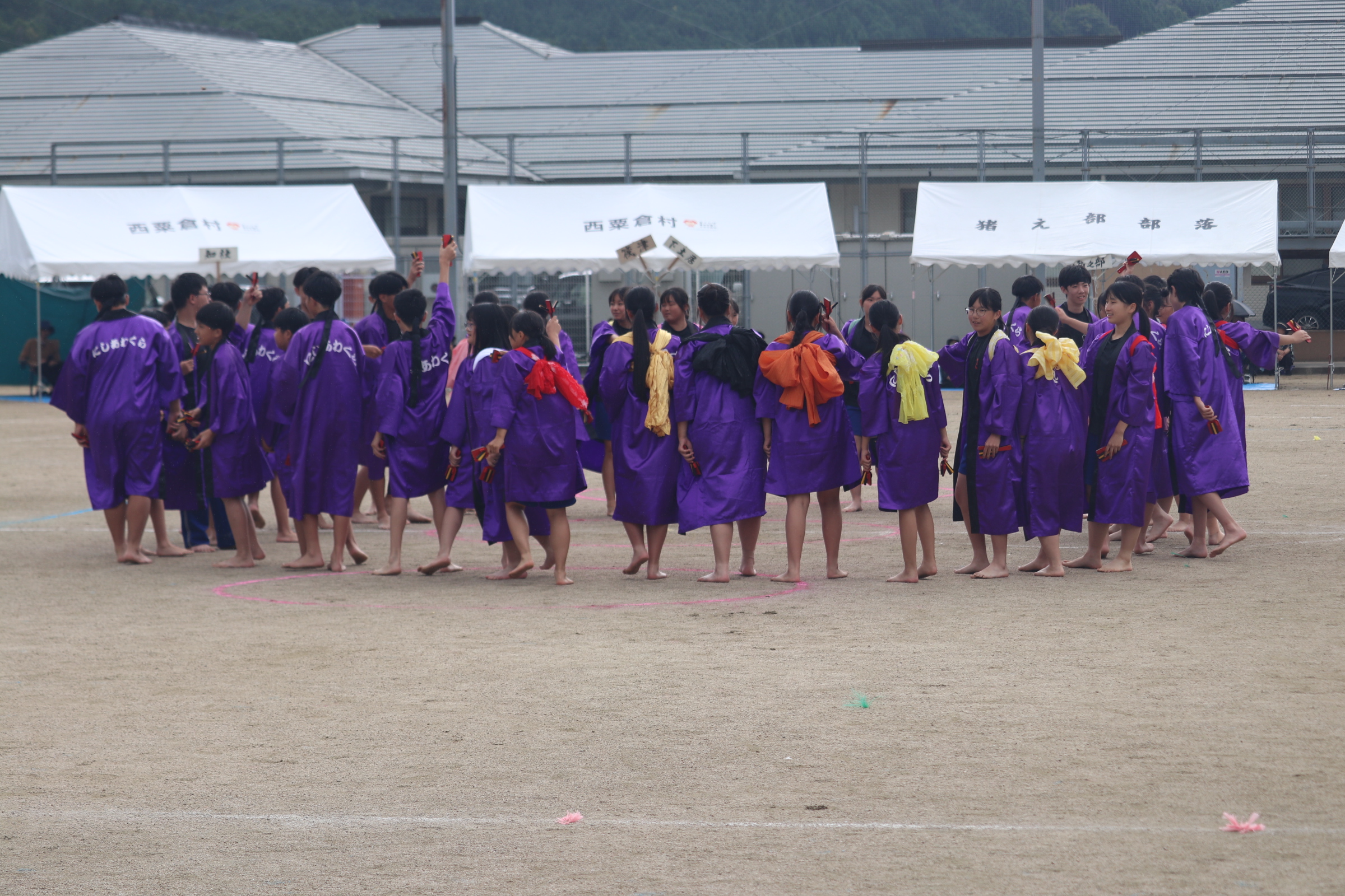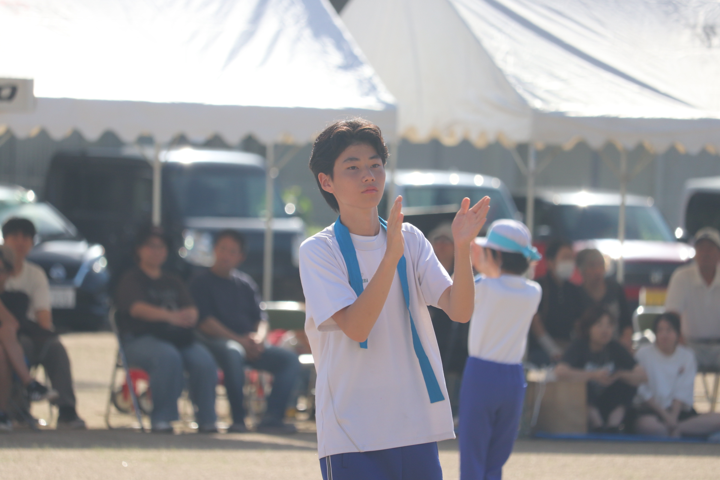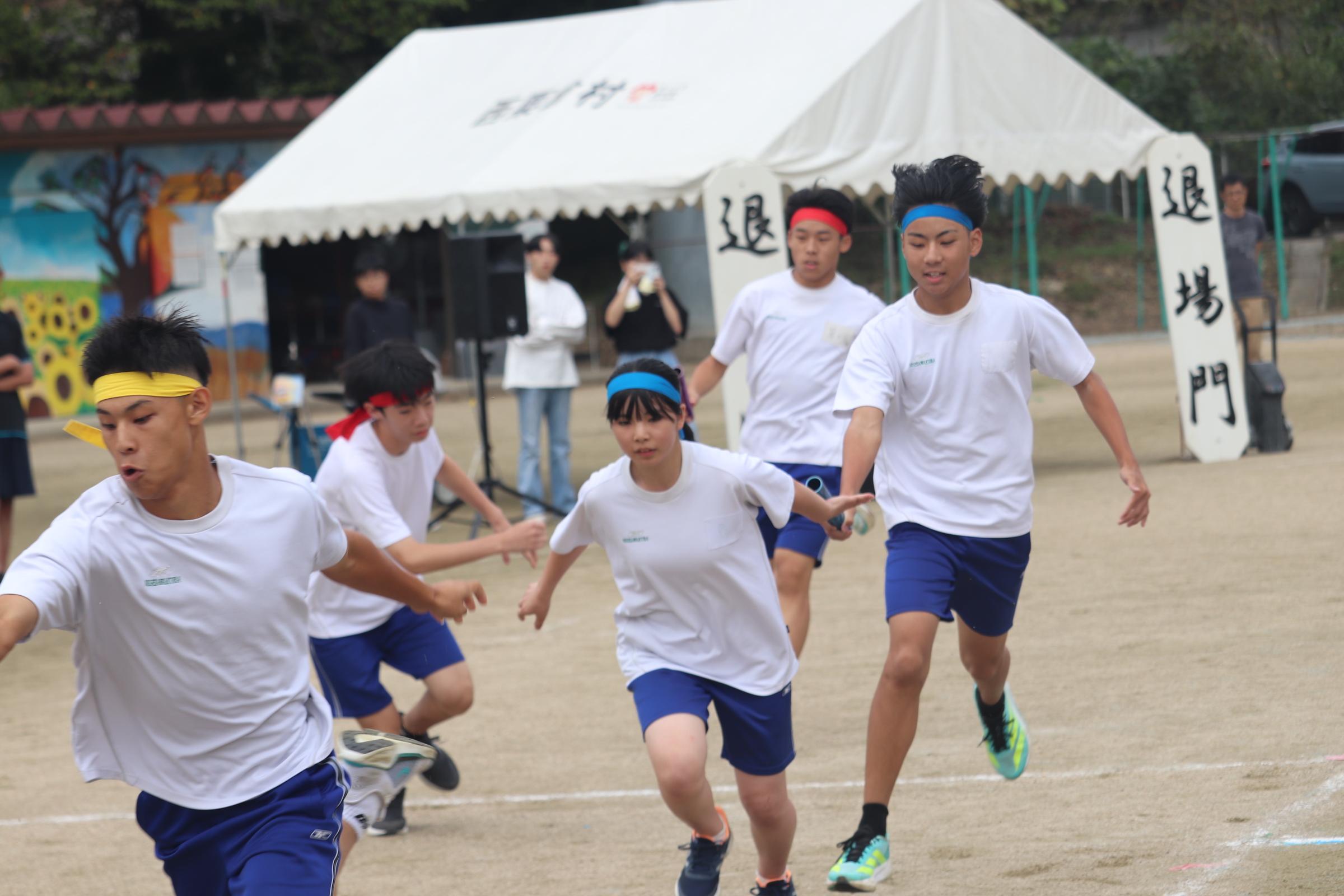 西粟倉村ならではの幼・小・中合同運動会が、晴天の下で開催されました。幼稚園児や小学生に接する優しい姿と、迫力ある演技や真剣に競技に取り組む姿を見せてくれました。