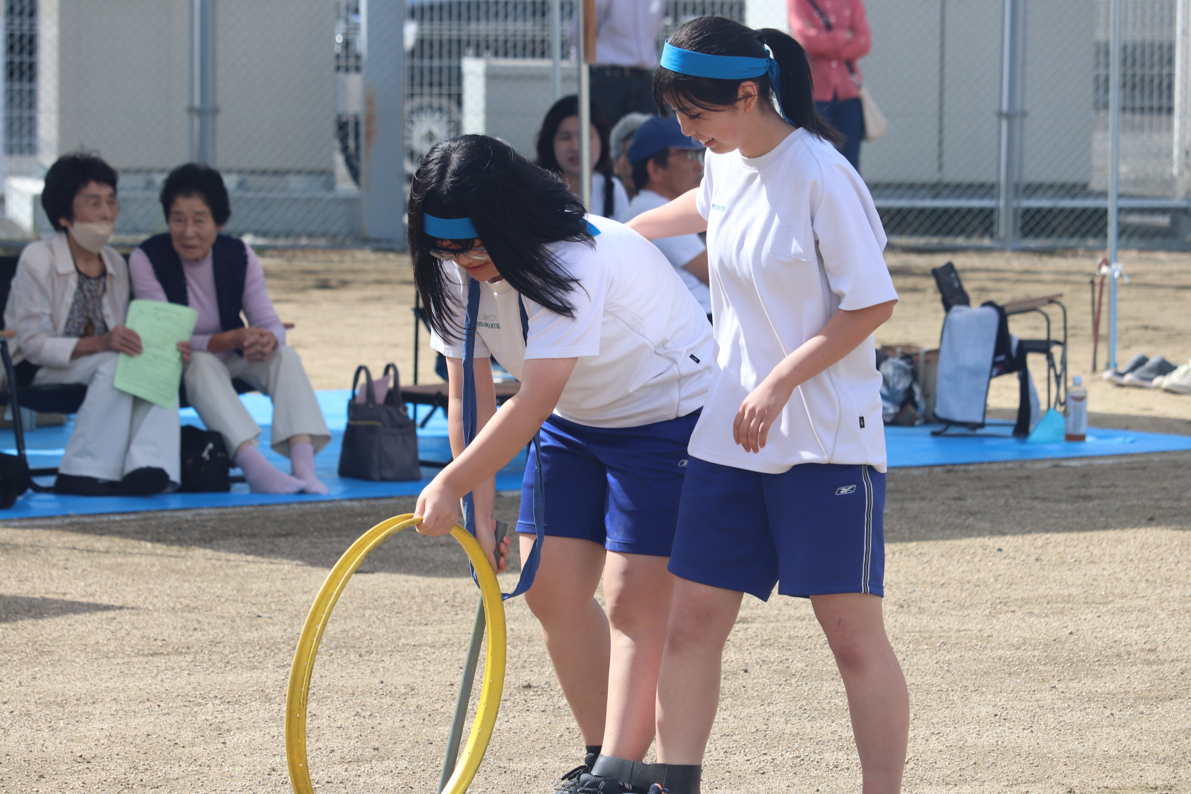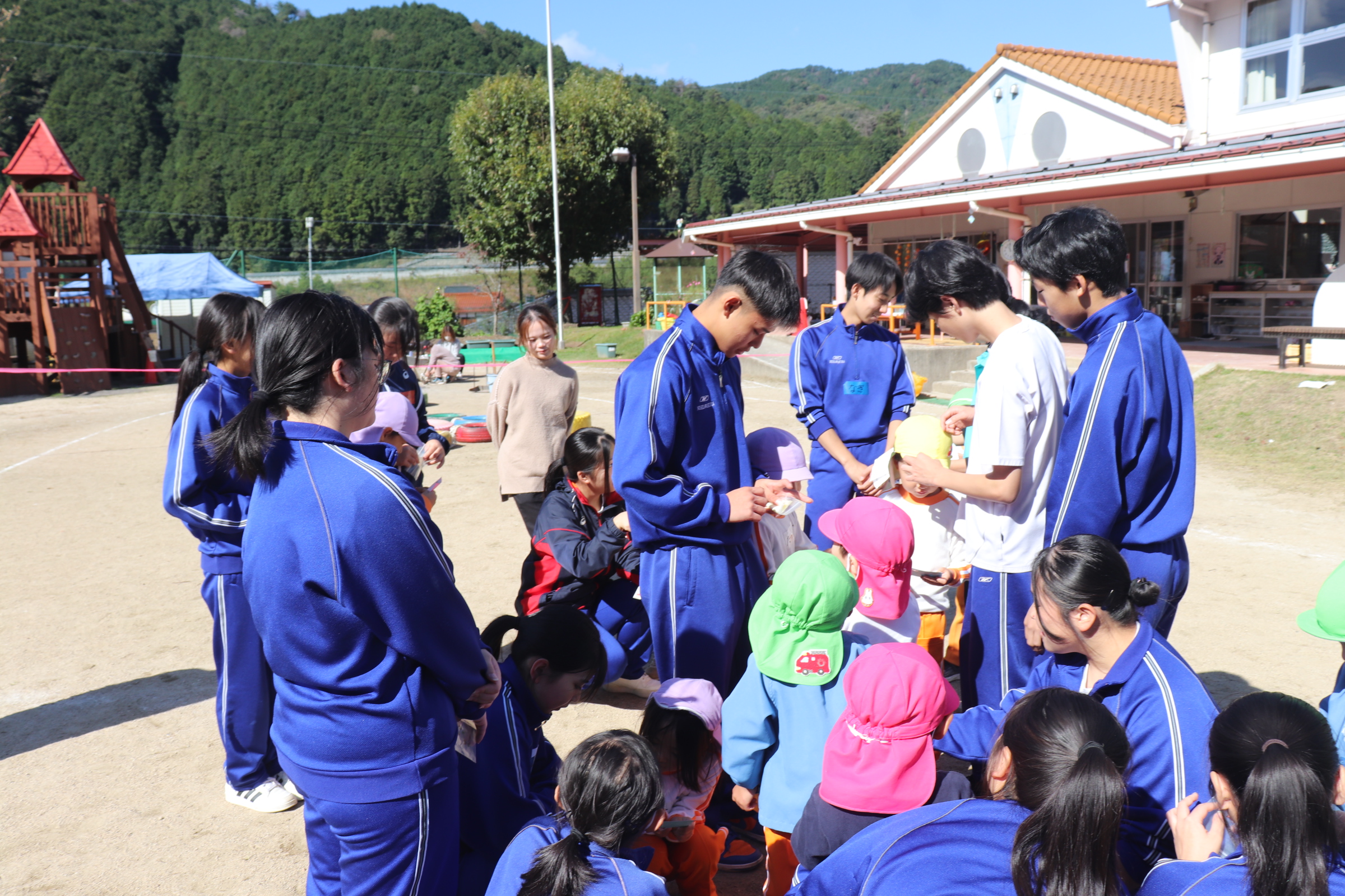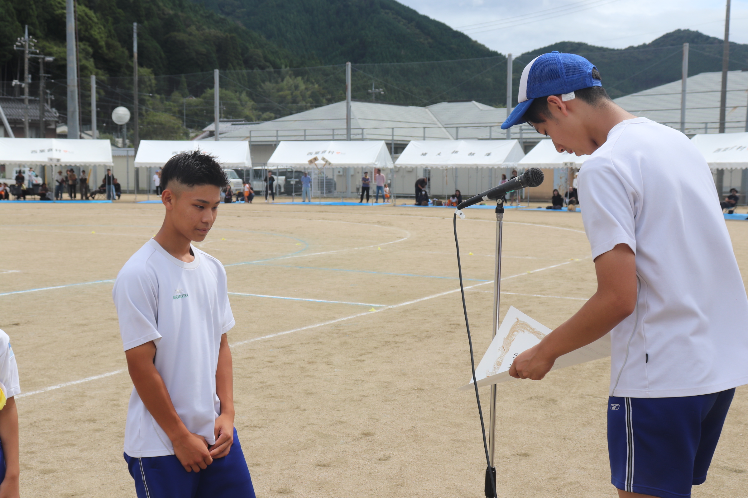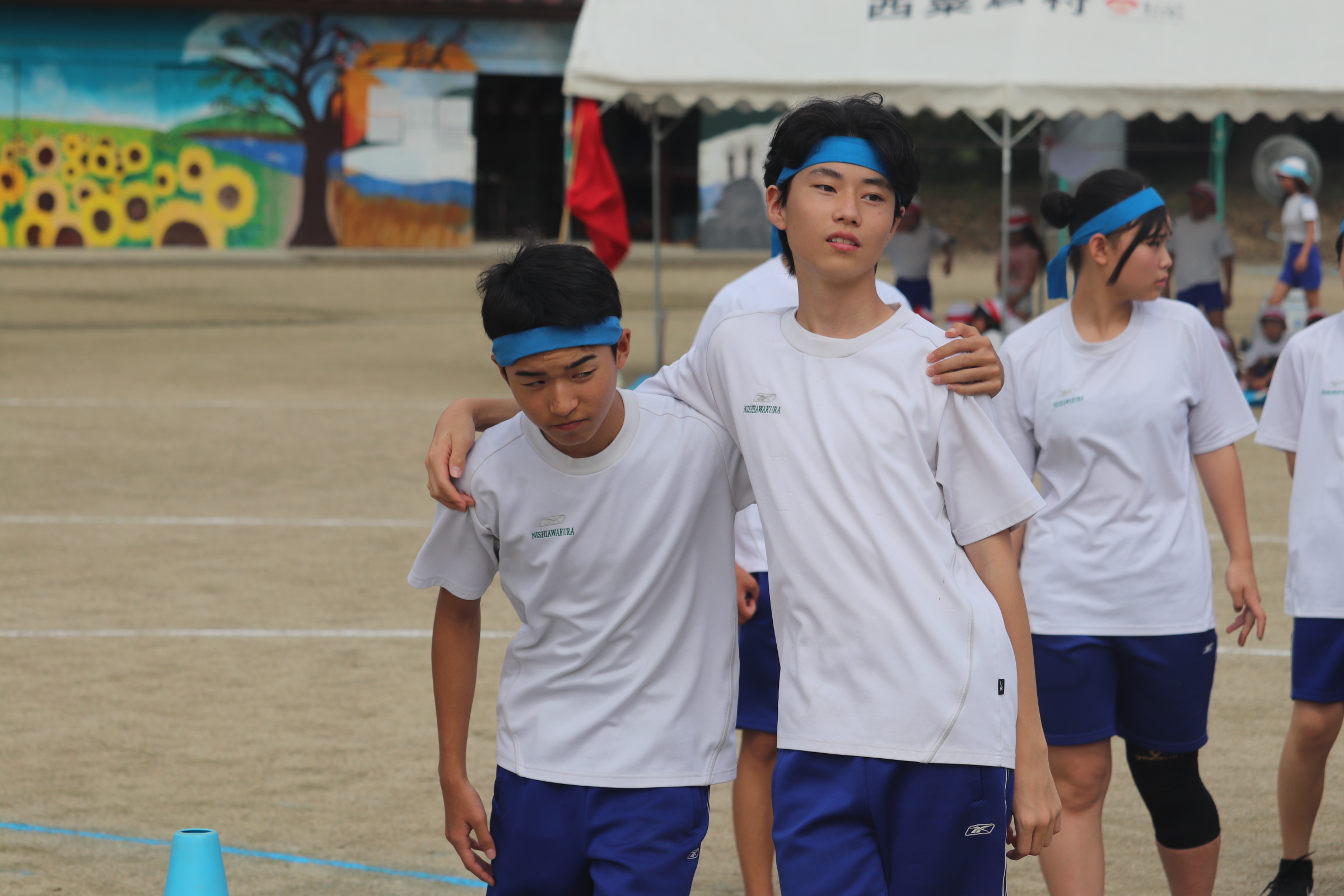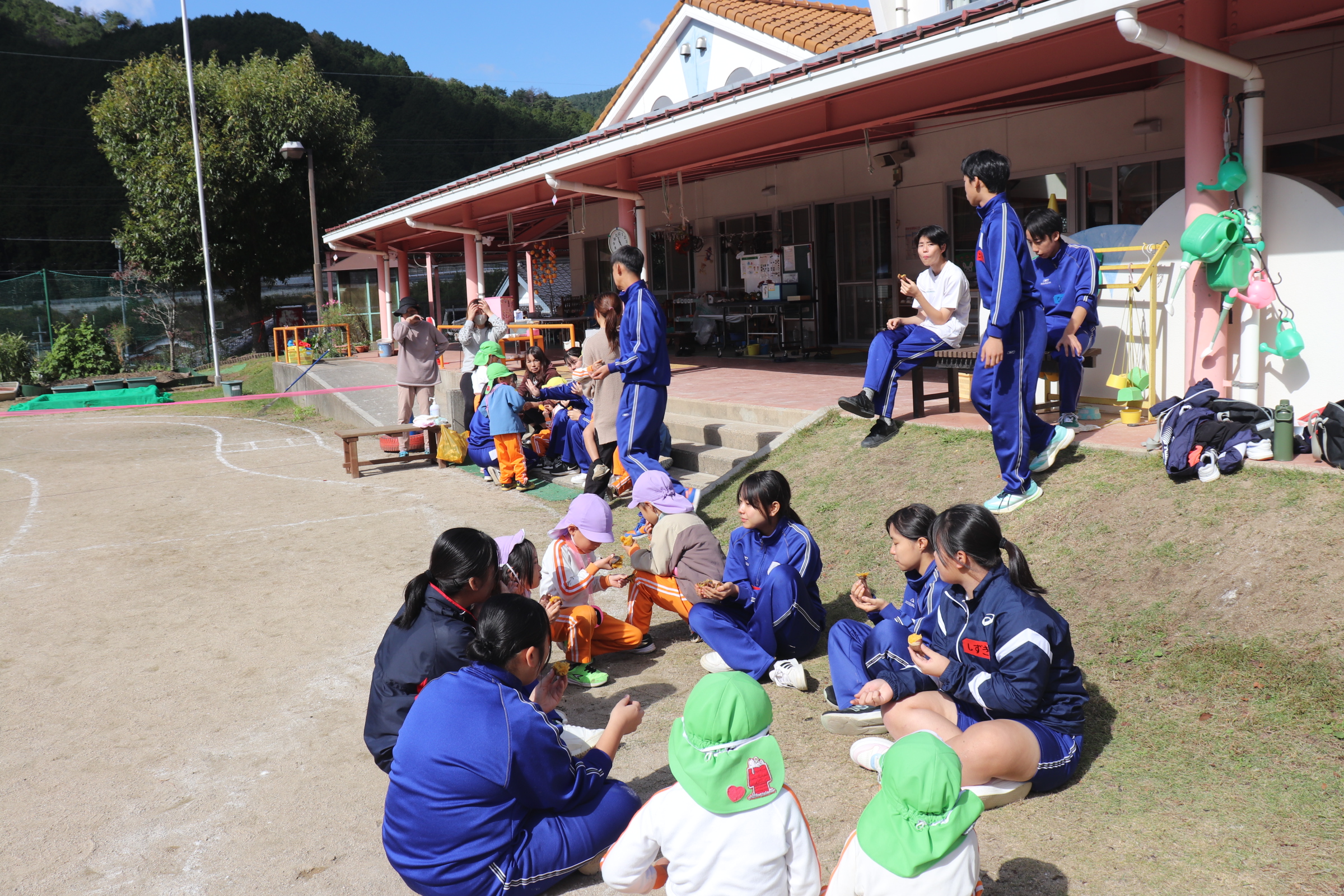 西粟倉村ならではの幼・小・中合同運動会が、晴天の下で開催されました。幼稚園児や小学生に接する優しい姿と、迫力ある演技や真剣に競技に取り組む姿を見せてくれました。