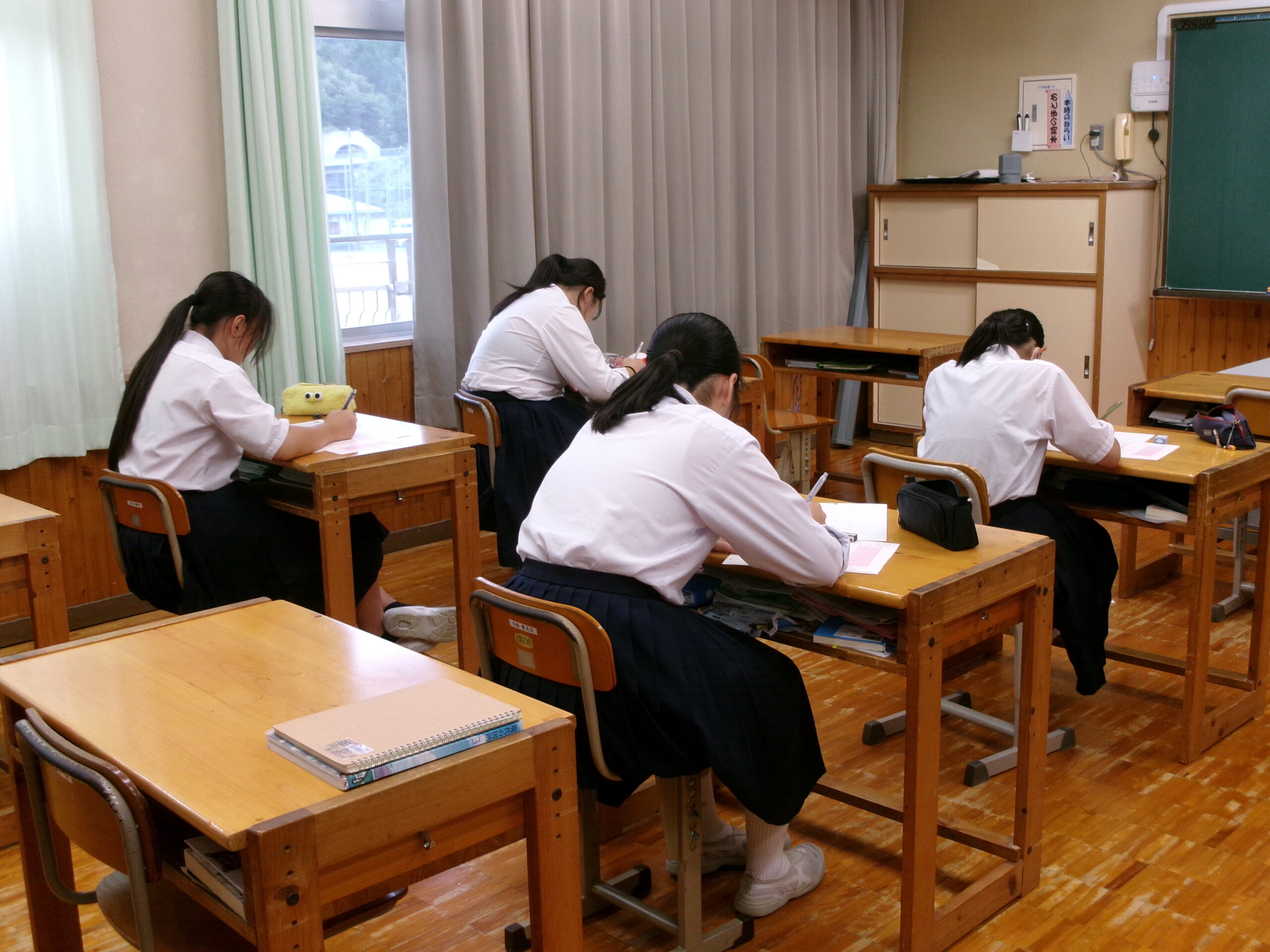 夏季休業中の宿題をしたり、1学期の復習をするための学習教室が本日11:10より行われました。本日参加したのは全校生徒のうち約1/3の13名でした。明日25日(金)と8月1日(金)も11:10~12:00の時間帯で実施します。より多くの生徒の参加を待っています。