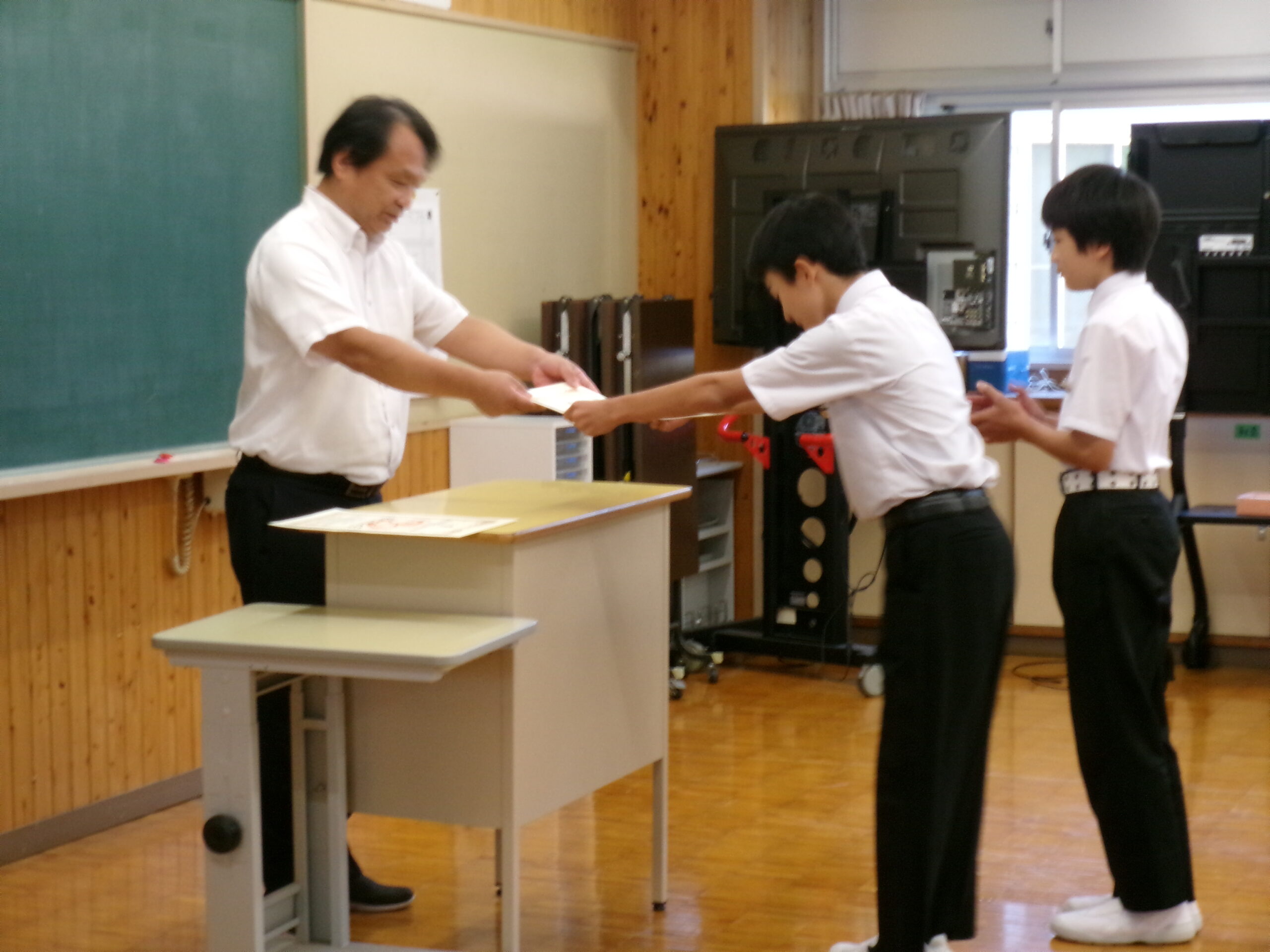 1学期の終業式を行いました。その後各教室では、担任から夏休み中の諸注意とともに、充実した日々にしようと、話がありました。