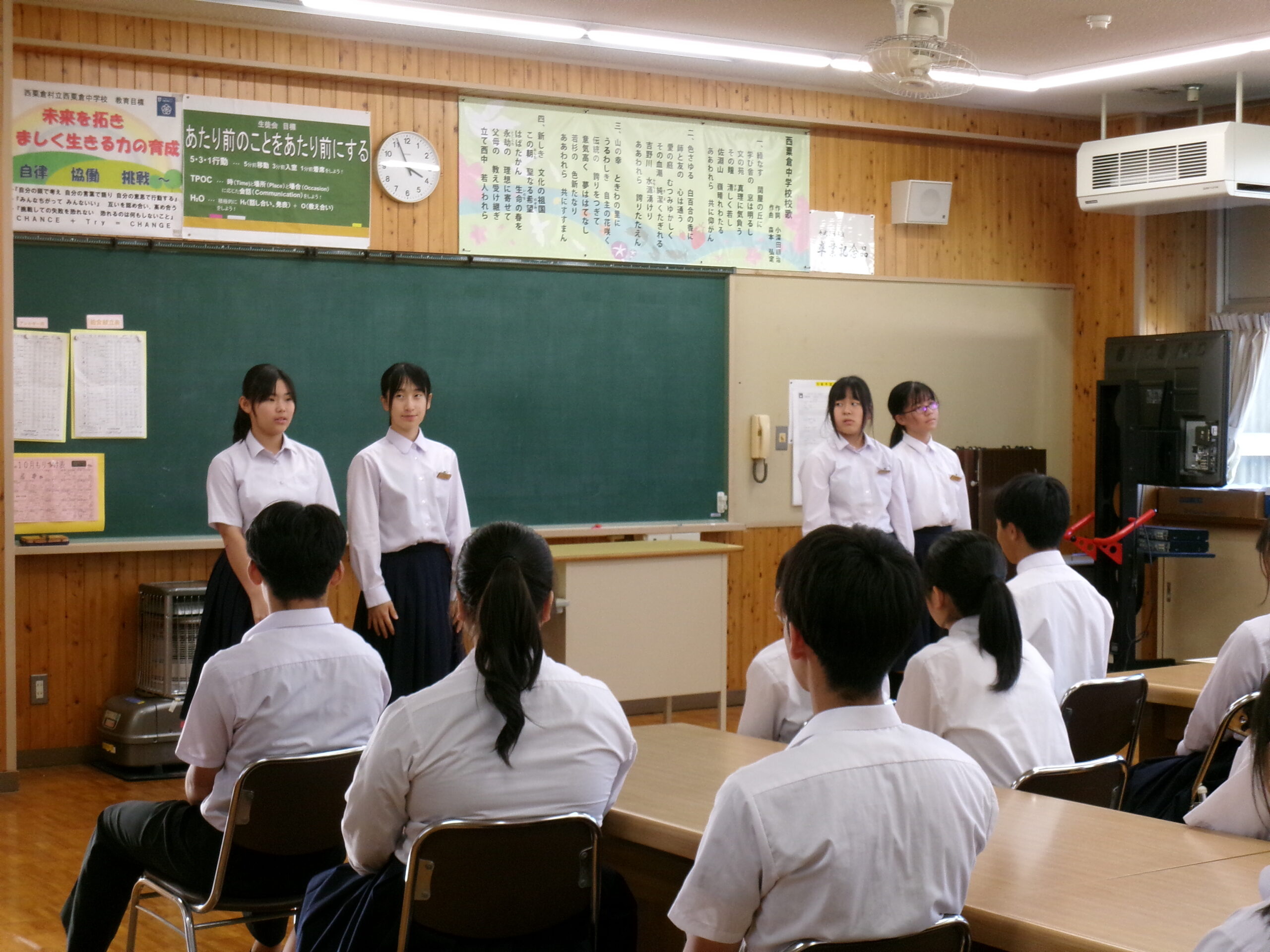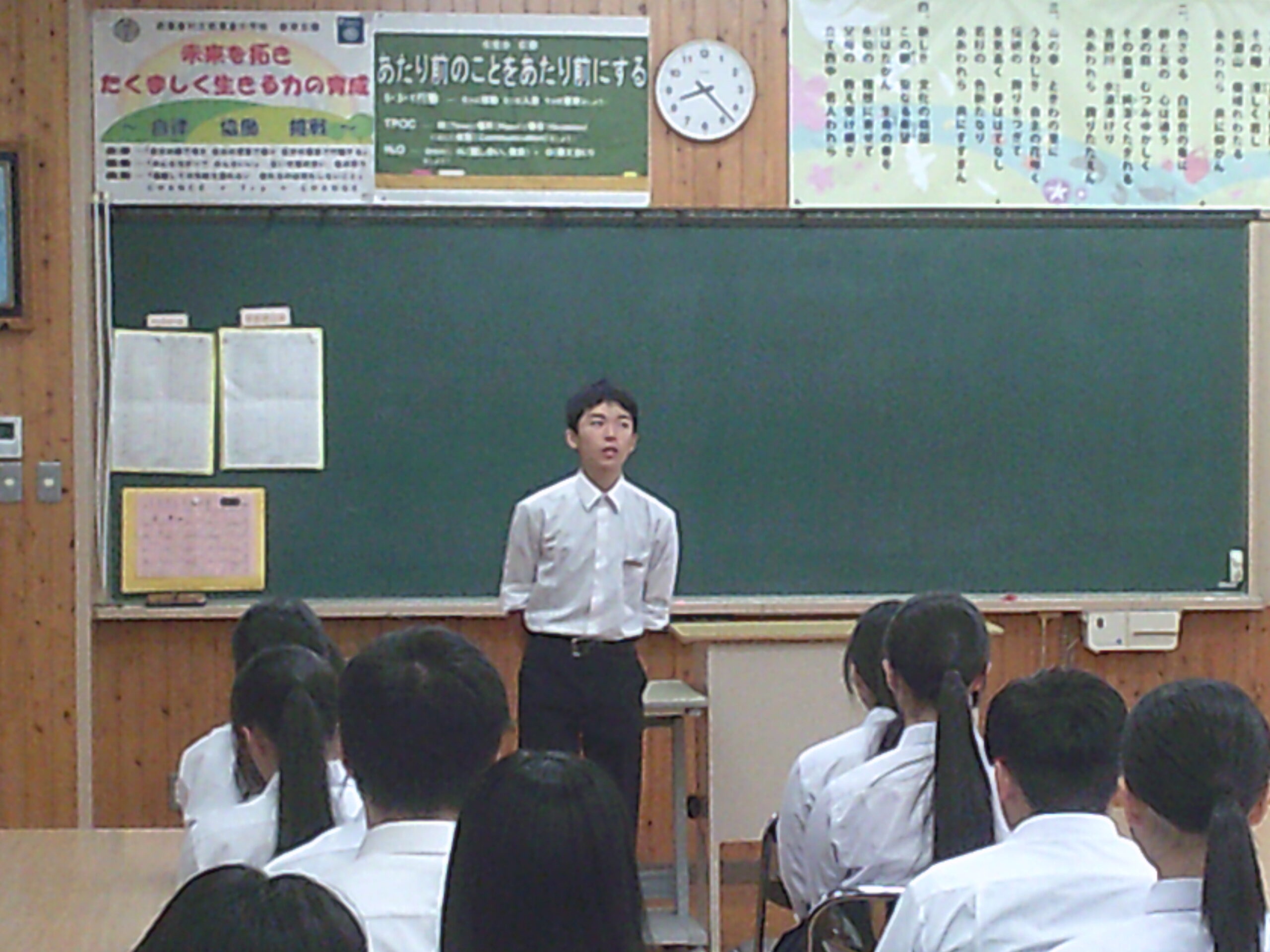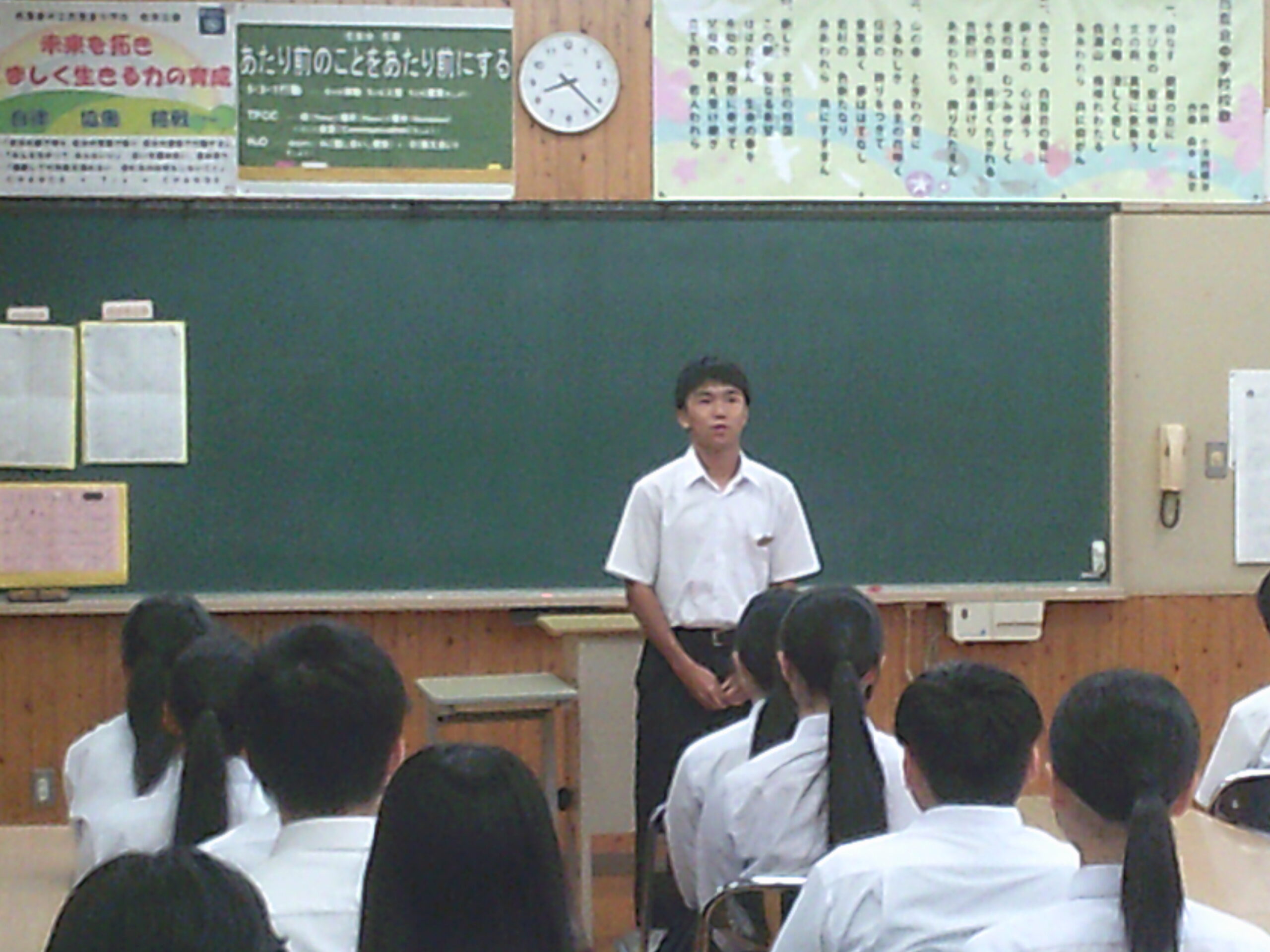 本日5、6限は全校で意見文発表会を行いました。保護者の方への案内が直前となり、都合をつけることができず参加できなかった方もいると思います。申し訳ありませんでした。生徒によっては、夏休みをはじめとして9月中にも何度も書き直し、立派な意見文を発表しました。自分が発表するだけではなく、相互で意見文の内容を評価しながら、今月末の学習発表会での発表者の選出も行っています。ぜひ25日(土)の学習発表会には代表生徒の発表を聞きに来ていただけたらと思います。