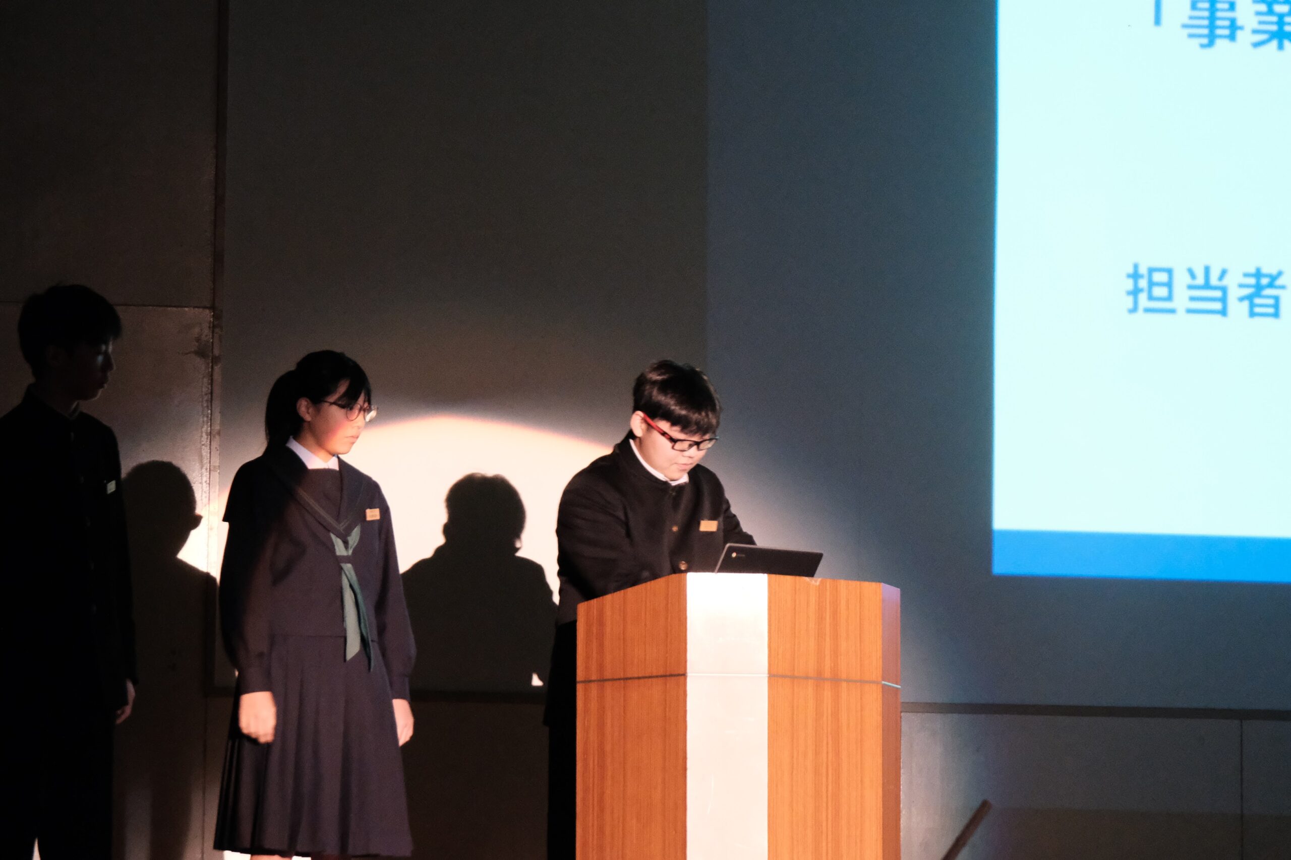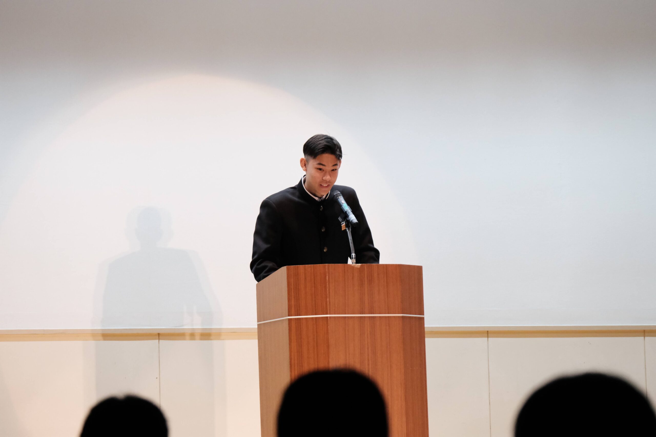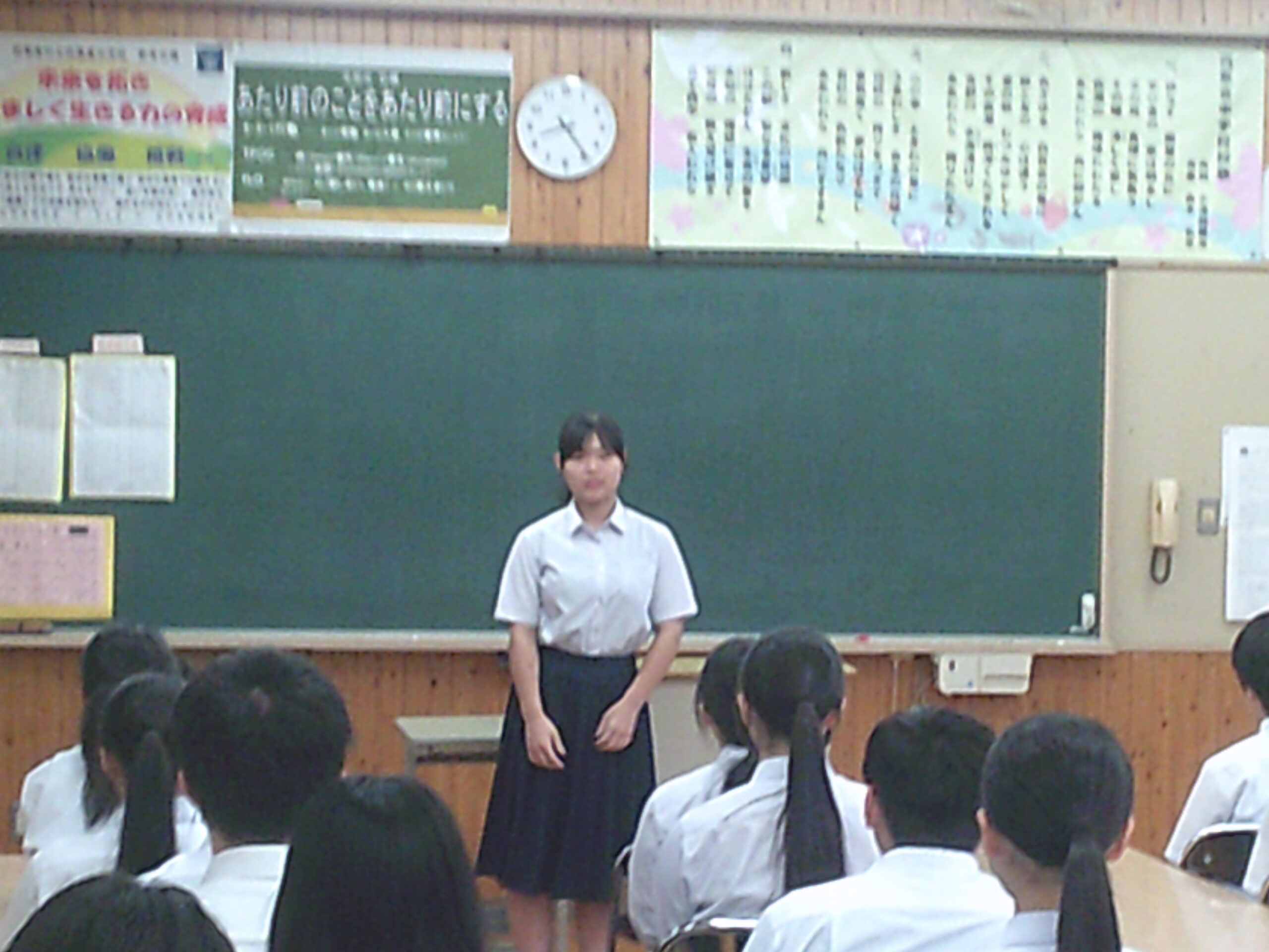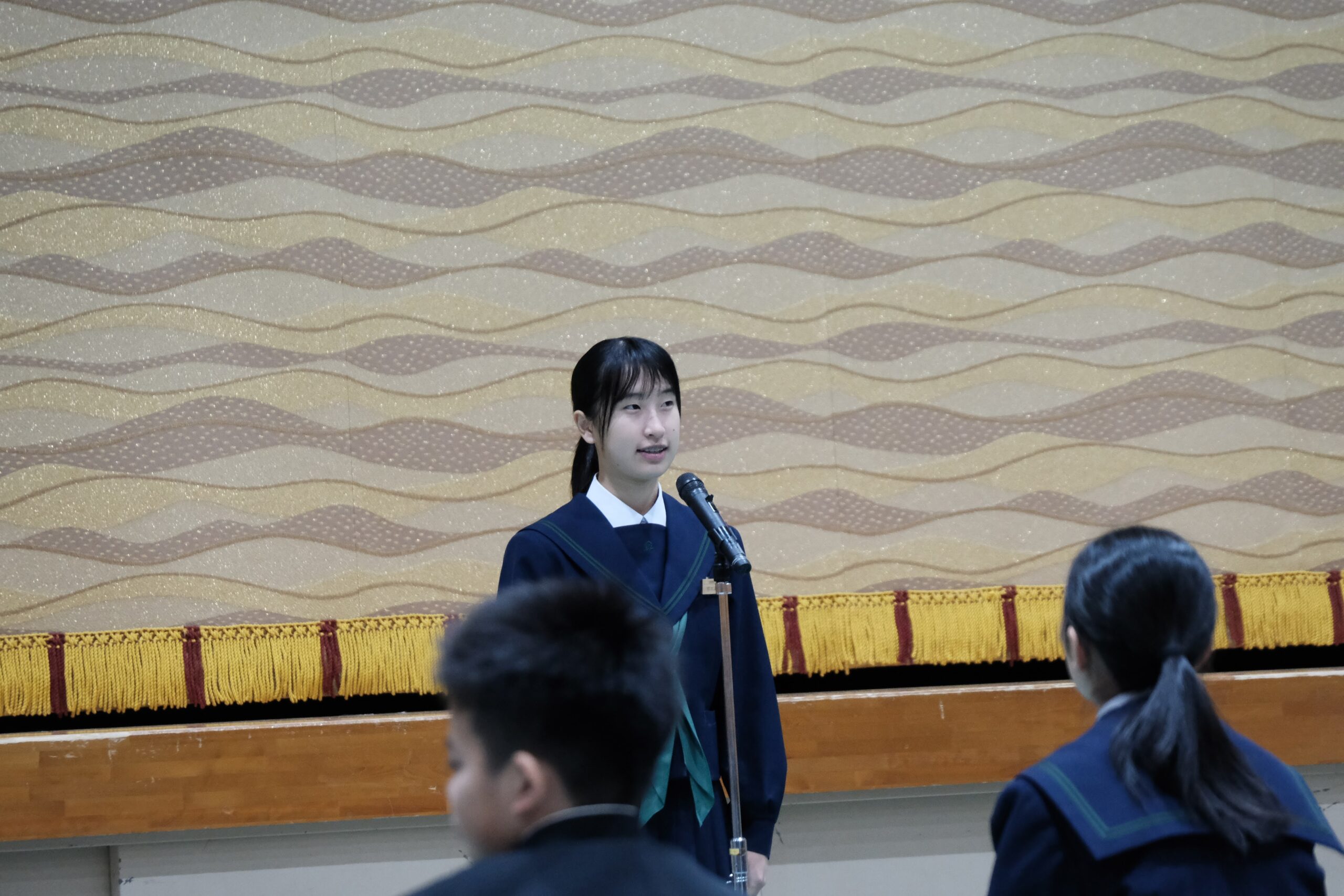 生徒会役員に立候補者の立ち合い演説会があり、その後投票が行われました。緊張した面持ちで演説の順番を待っていましたが、生徒の前に立つと堂々とした態度ではっきりと思いを伝えることができました。