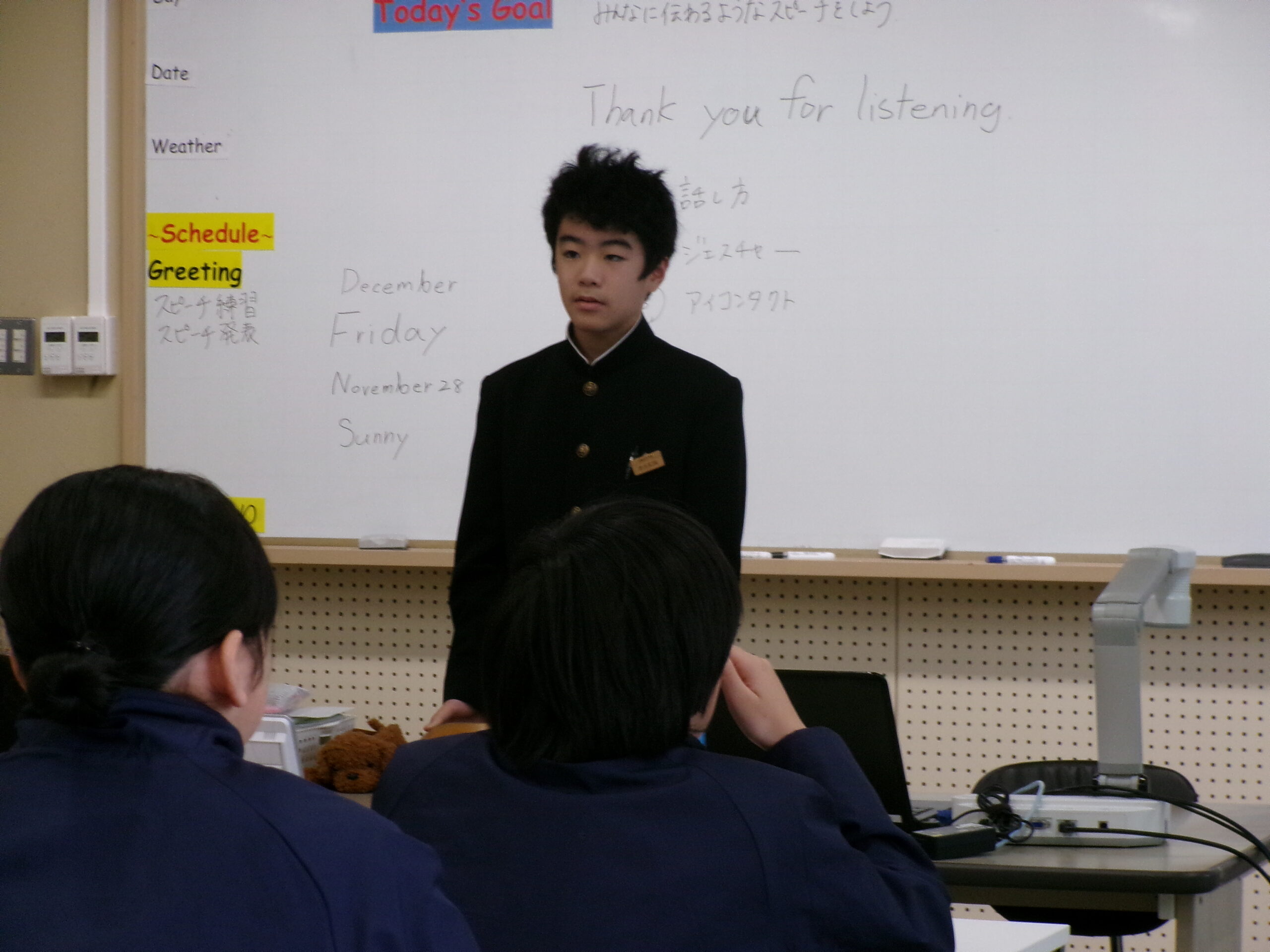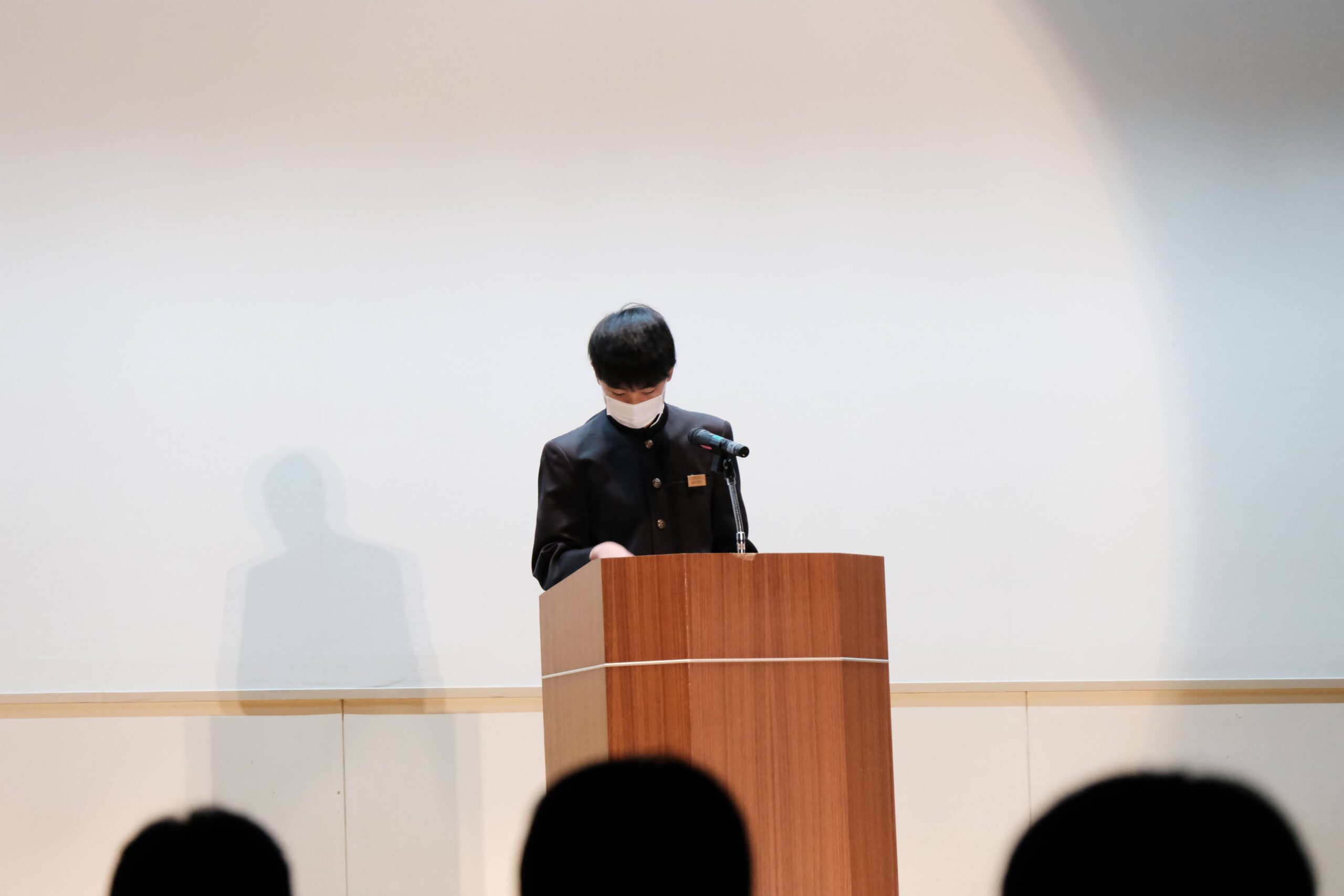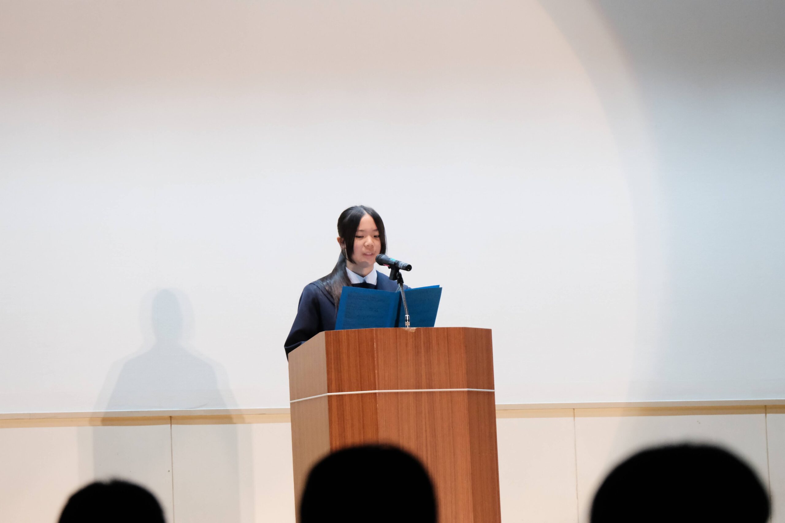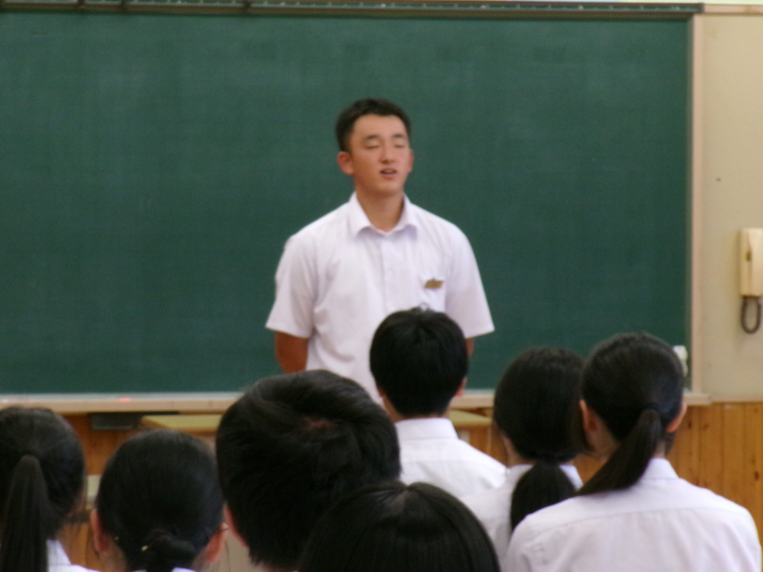 生徒会役員に立候補者の立ち合い演説会があり、その後投票が行われました。緊張した面持ちで演説の順番を待っていましたが、生徒の前に立つと堂々とした態度ではっきりと思いを伝えることができました。