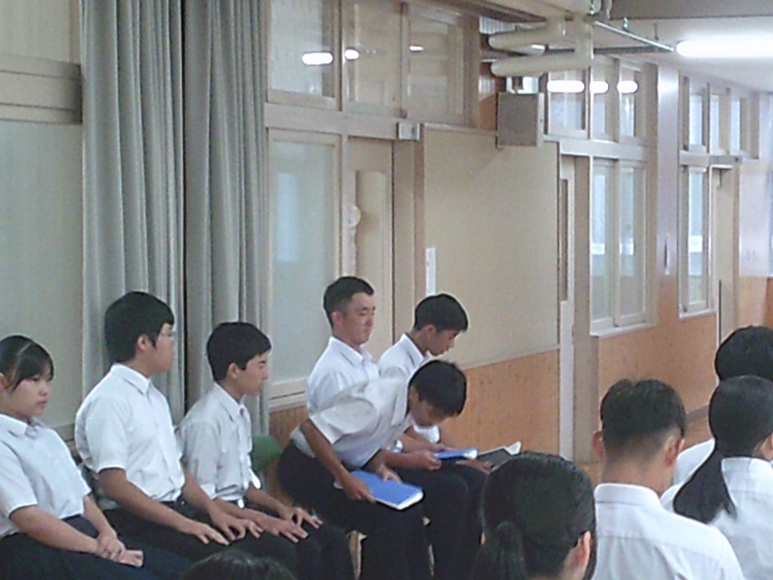 8月29日(金)の専門委員会を受けて、本日朝、生徒集会が行われました。9月の取組で前期が終わります。各員会でも、最後の活動計画を立て、全校生徒に活動を訴えました。一歩ずつ、生徒自身の手でつくる学校に近づいてますね。