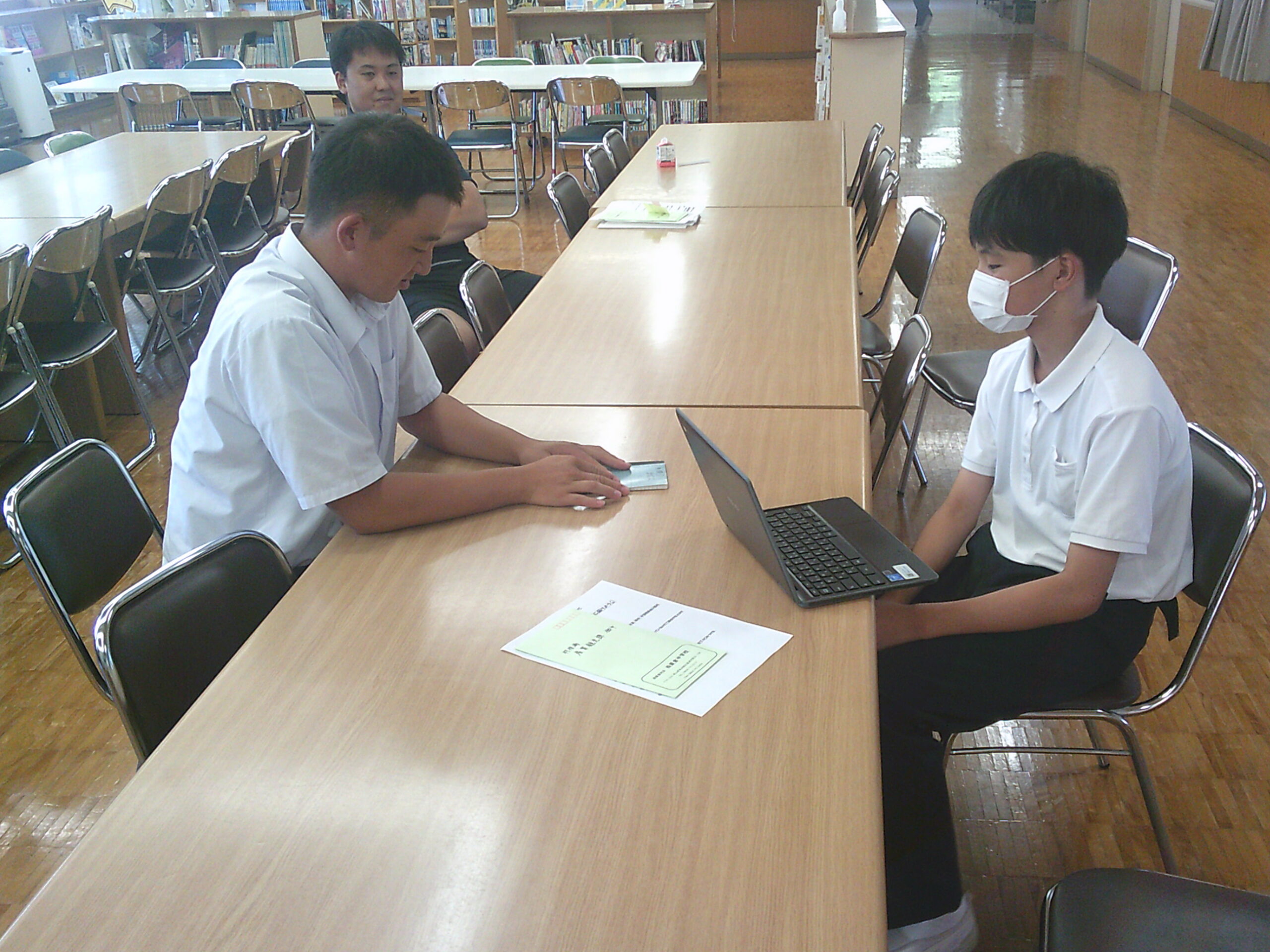今日は3年生のみの登校日です。近隣の高校でオープンスクールが開催されていることもあり、全員の出席とはなりませんでしたが、熱い中、(地域熱を利用した冷房が効いた教室内で)それぞれの教科の勉強を勧めました。