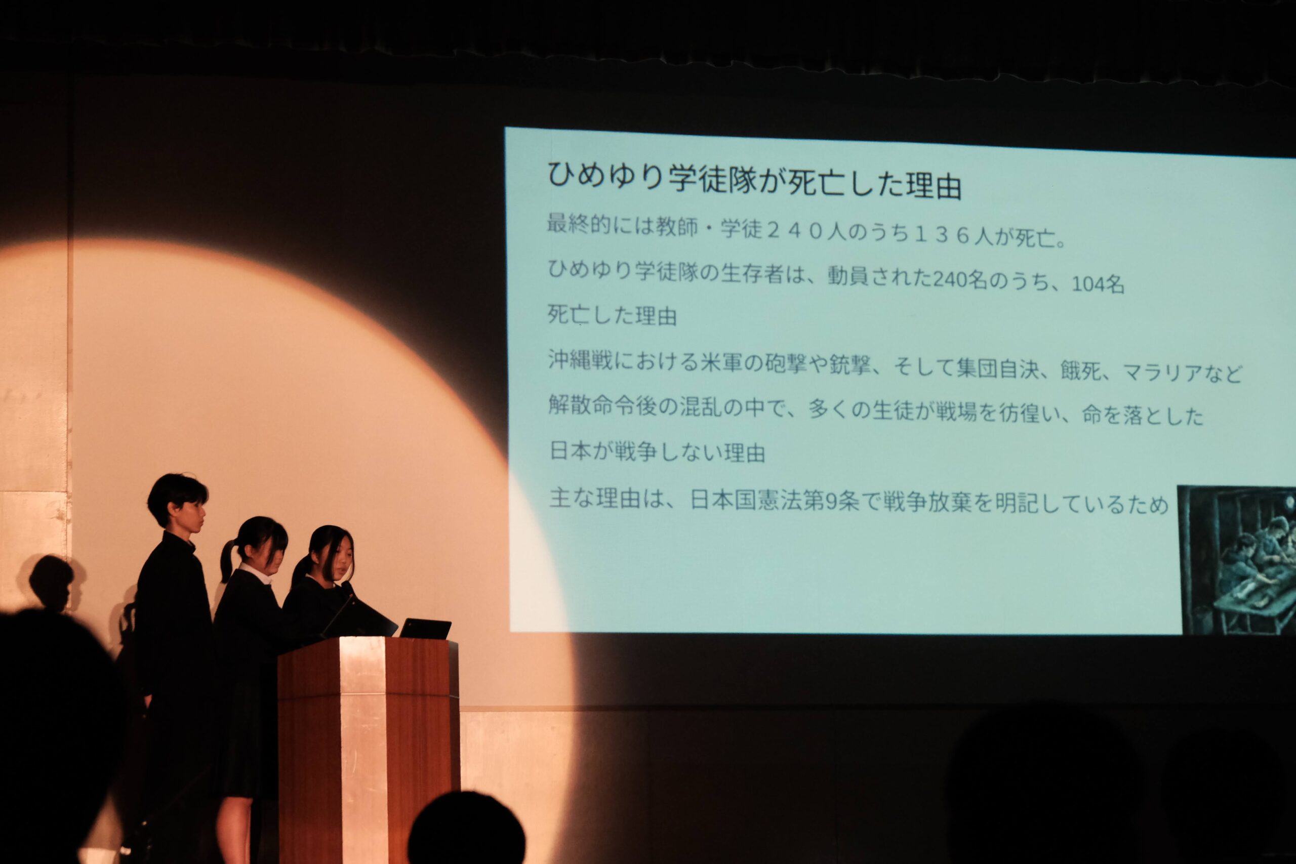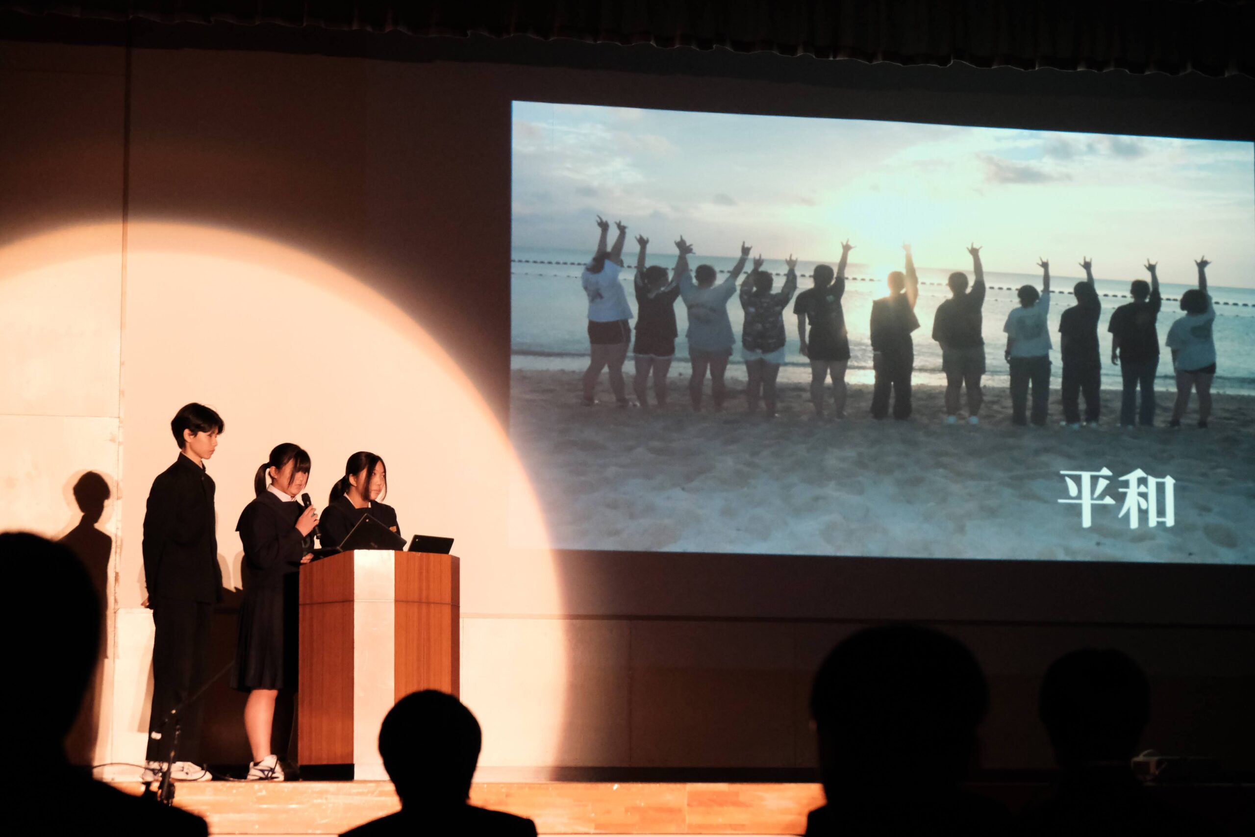 台風の影響で延期された修学旅行ですが、今回はお天気にも恵まれて無事に実施できました。沖縄の自然を満喫し、平和の大切さを学ぶことができました。