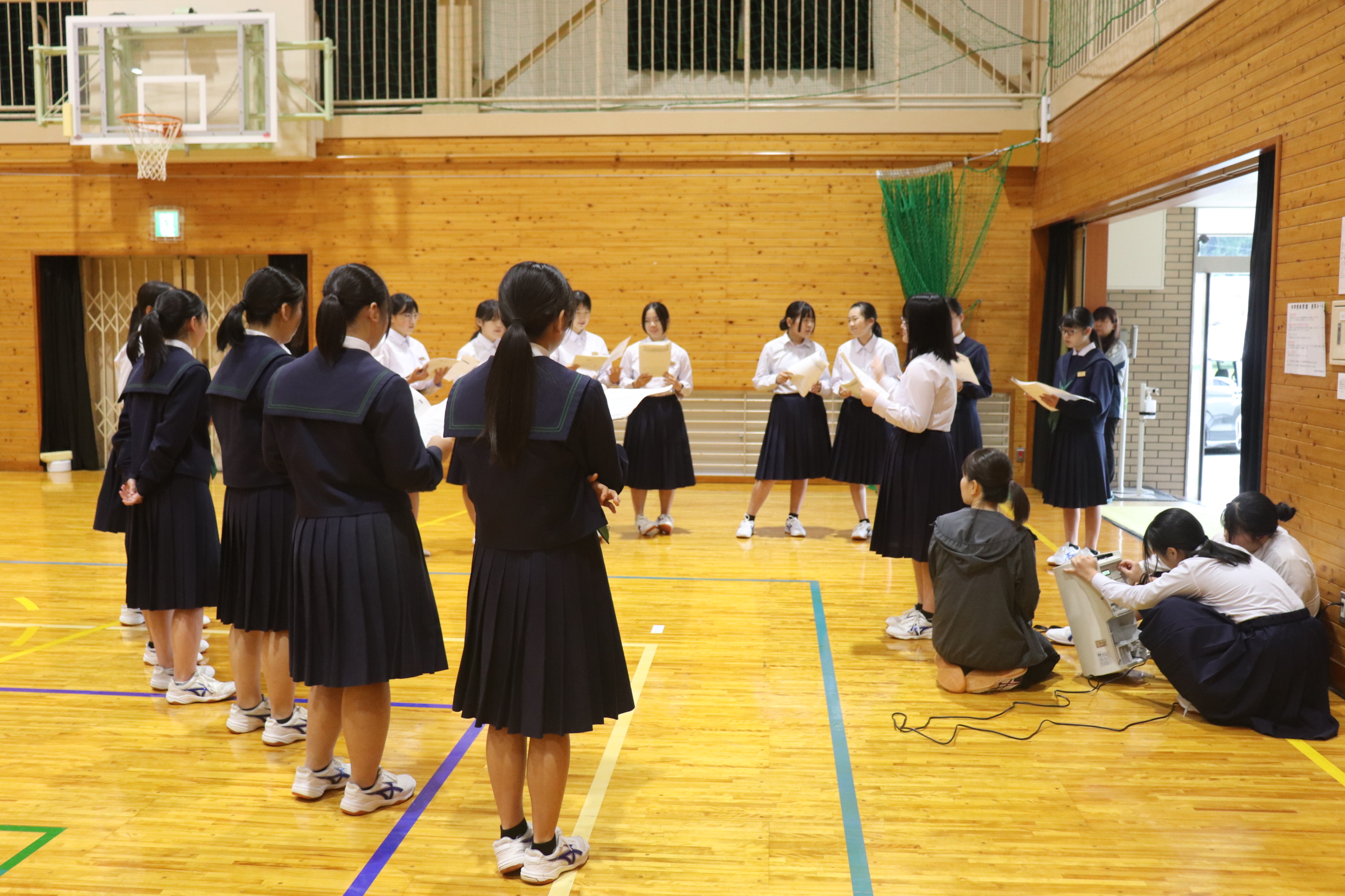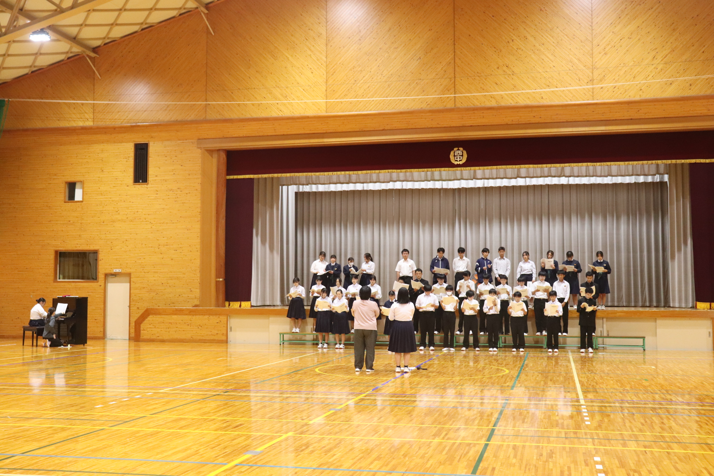 今週末の25日(土)には学習発表会があります。その中で行う「合唱」の合同練習を始めて体育館で行いました。3年生の代表の生徒が緊張しながらも指示を出し、全体で初めて整列したり、合唱をしたり、パートごとに分かれて練習をしたりと充実した1時間となりました。本番に向けてこれから最後の練習の追い込みです。当日多くの観客の前で、きれいな歌声を披露してくれることを楽しみにしています。