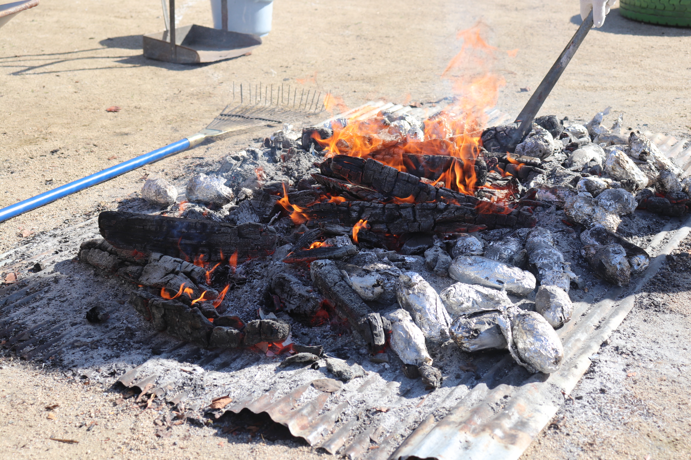 講堂学習、野外炊事(カレーライス)、まが玉づくりを通して、責任ある行動と協力することの大切さを学びました。