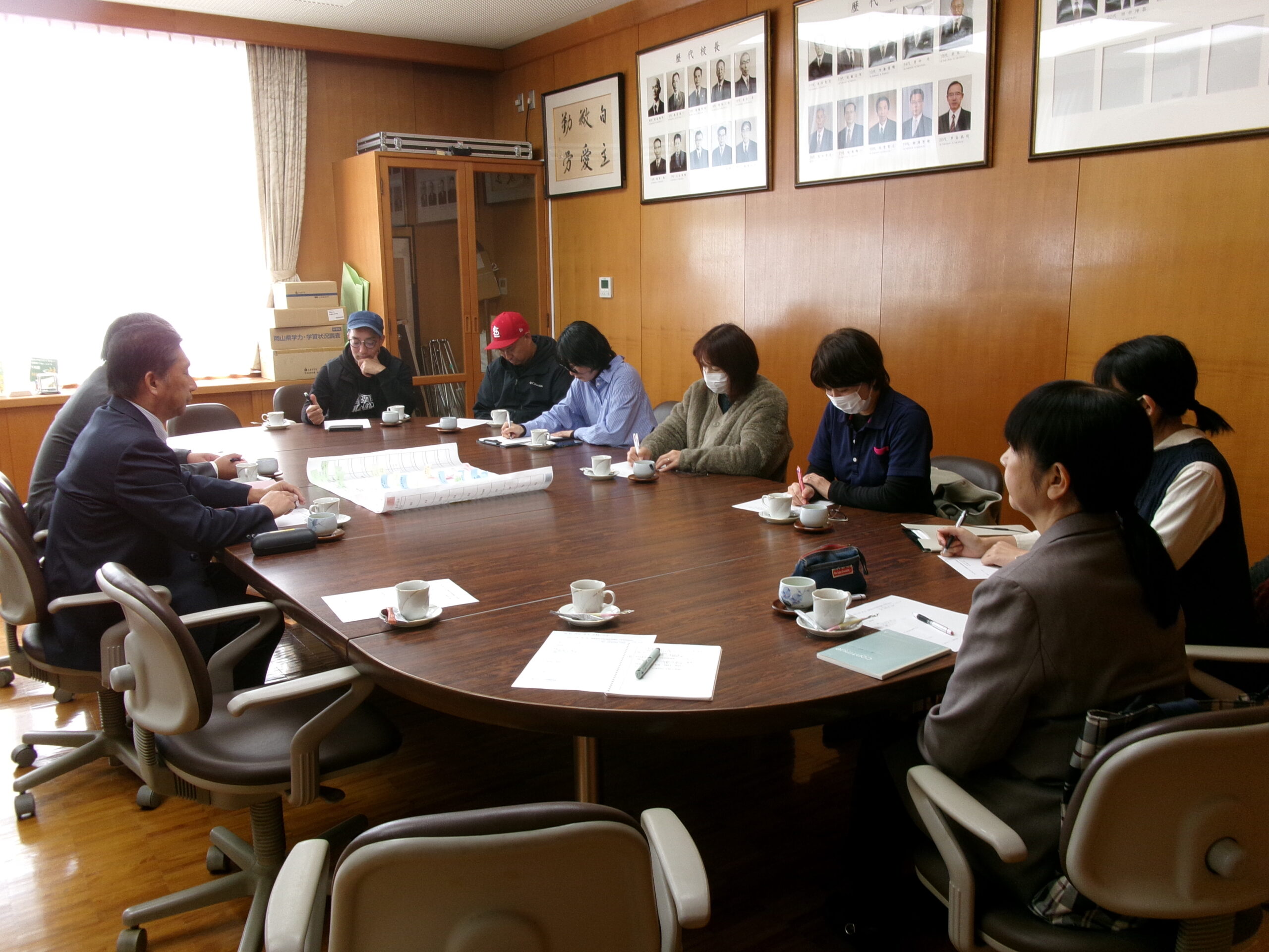 10:00~12:00の2時間学校運営協議会の中学校部会を行いました。冒頭約30分は授業参観、後半の1時間半は協議です。飛び入り参加も含め9名の方に参加していただき、多くの貴重なご意見を頂いたり、地域から学校を支えることを考えていただきました。今回の会での意見を総括すると「交流」となりました。地域社会で活躍している(働いている)大人との交流、リタイアしたお年寄りや各施設との交流、同年代や地域の他校との交流など様々なアイデアが出てきました。今後、これらのアイデアをもとに、学校でも地域でも実現できることから考え実施できたらと思います。