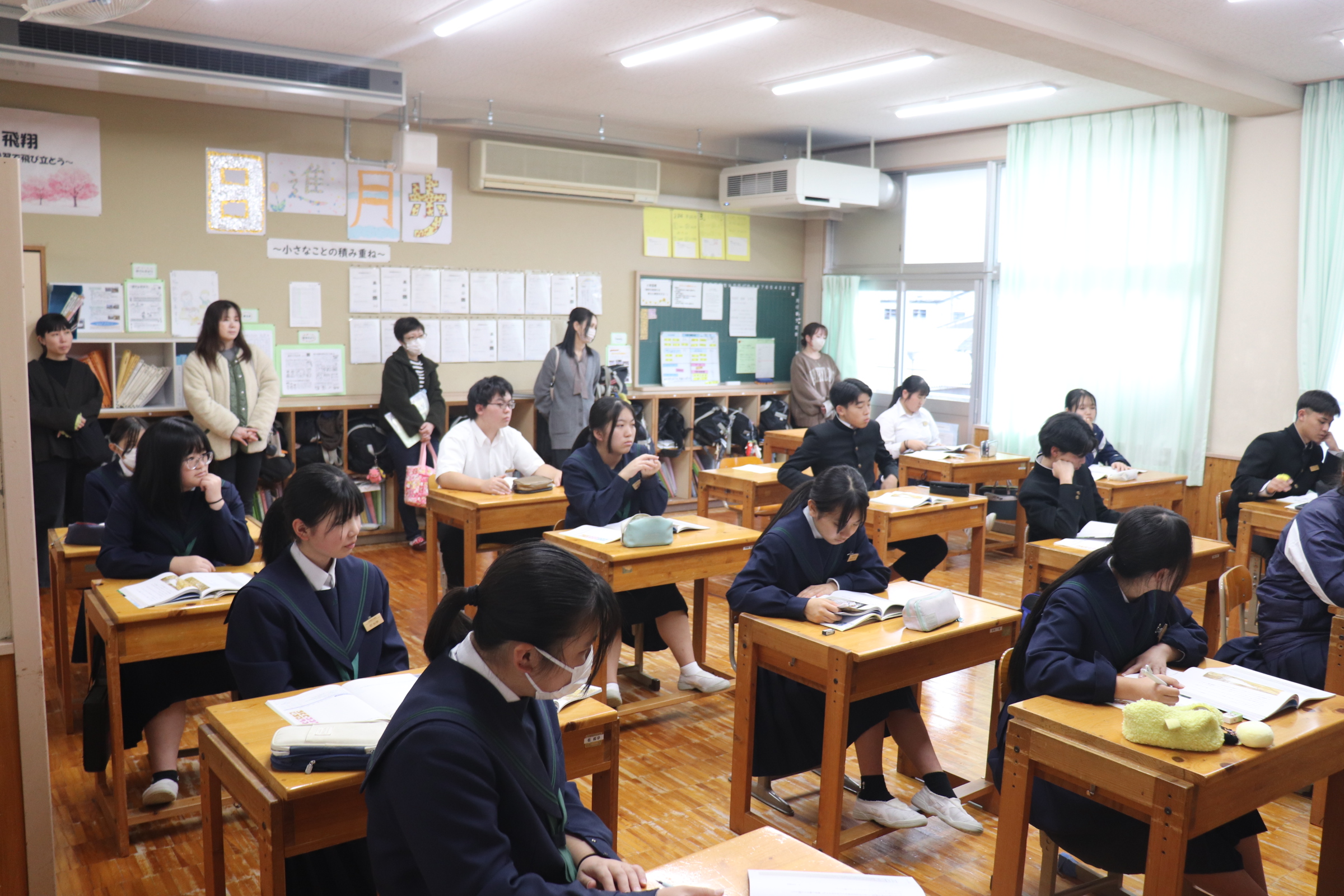 今日、明日は期末テストです。普段の学習した成果、この1週間頑張って復習を重ねた成果が発揮されることを祈っています。テスト週間中の放課後では、「質問教室」も開かれました。次々質問をする生徒、その質問や答えを聞く生徒、さらには、職員室まで先生を呼びに来て、勉強を教えて欲しいといった生徒など、「テストに向けて頑張ろう!」という気持ちが次々伝わってきました。時間内精一杯頑張ってください。