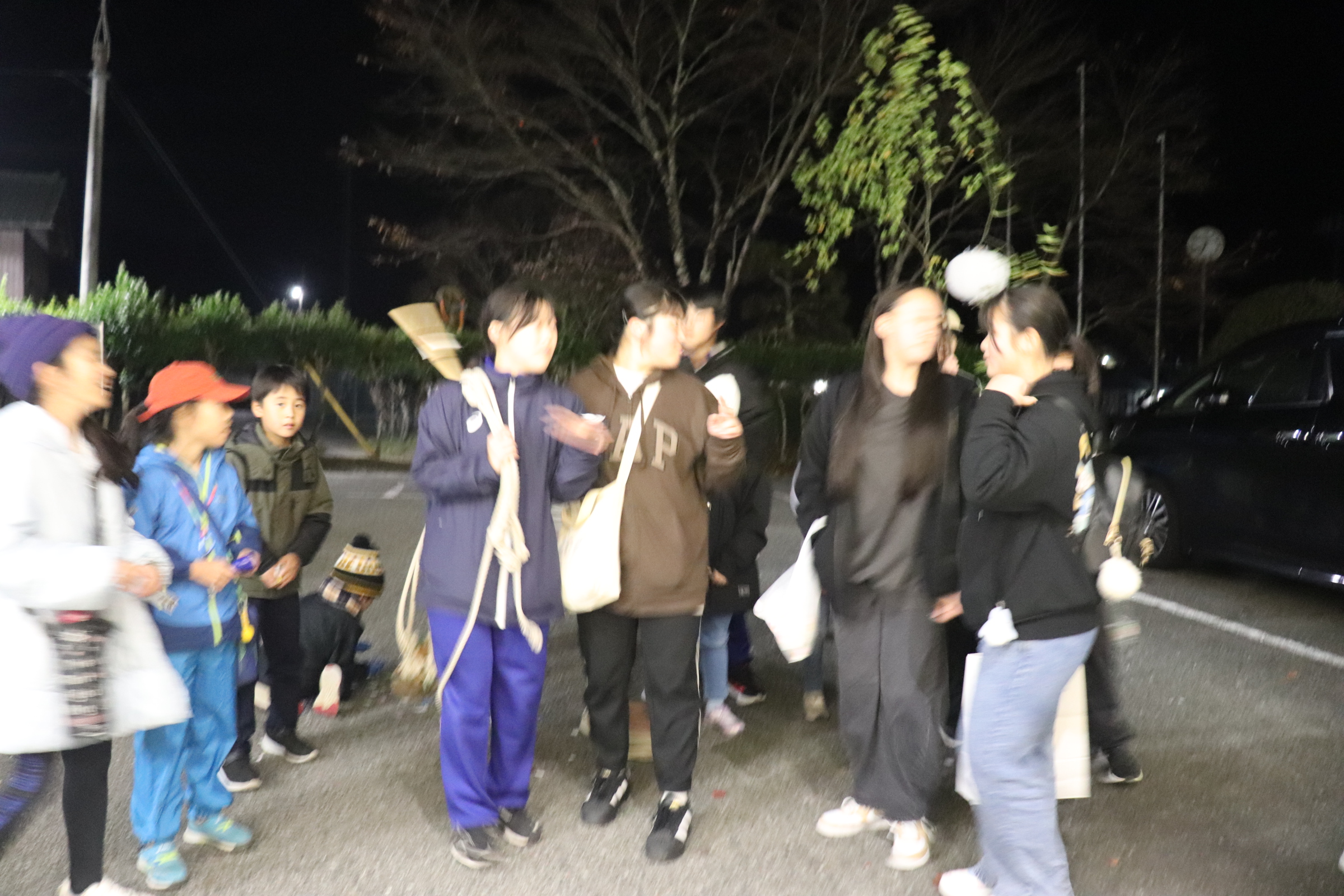 「今日の夜、いのこで学校に行く。」と生徒から情報が入り渡すものの準備をしながら、職員が帰らず待っていると、小中学生が地域の方と一緒に掛け声をかけながら学校にやってきました。このような伝統文化が残り、子供たちの成長を支える地域の土台がしっかりしていることに感謝しながら、学校も地域の方と協力しながら子どもたちの成長を支えていけたらと一層感じるひとときでした。(暗くて写真があまりよくとれておらず、いのこのたいせつな「つく」写真がありません。来年はもっといいカメラも準備して待っています!)
