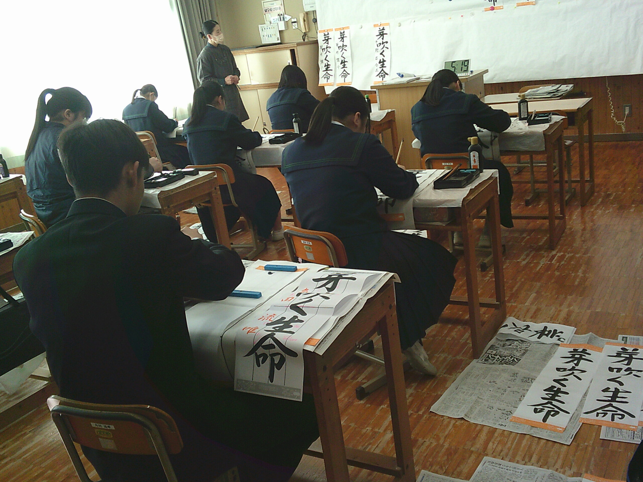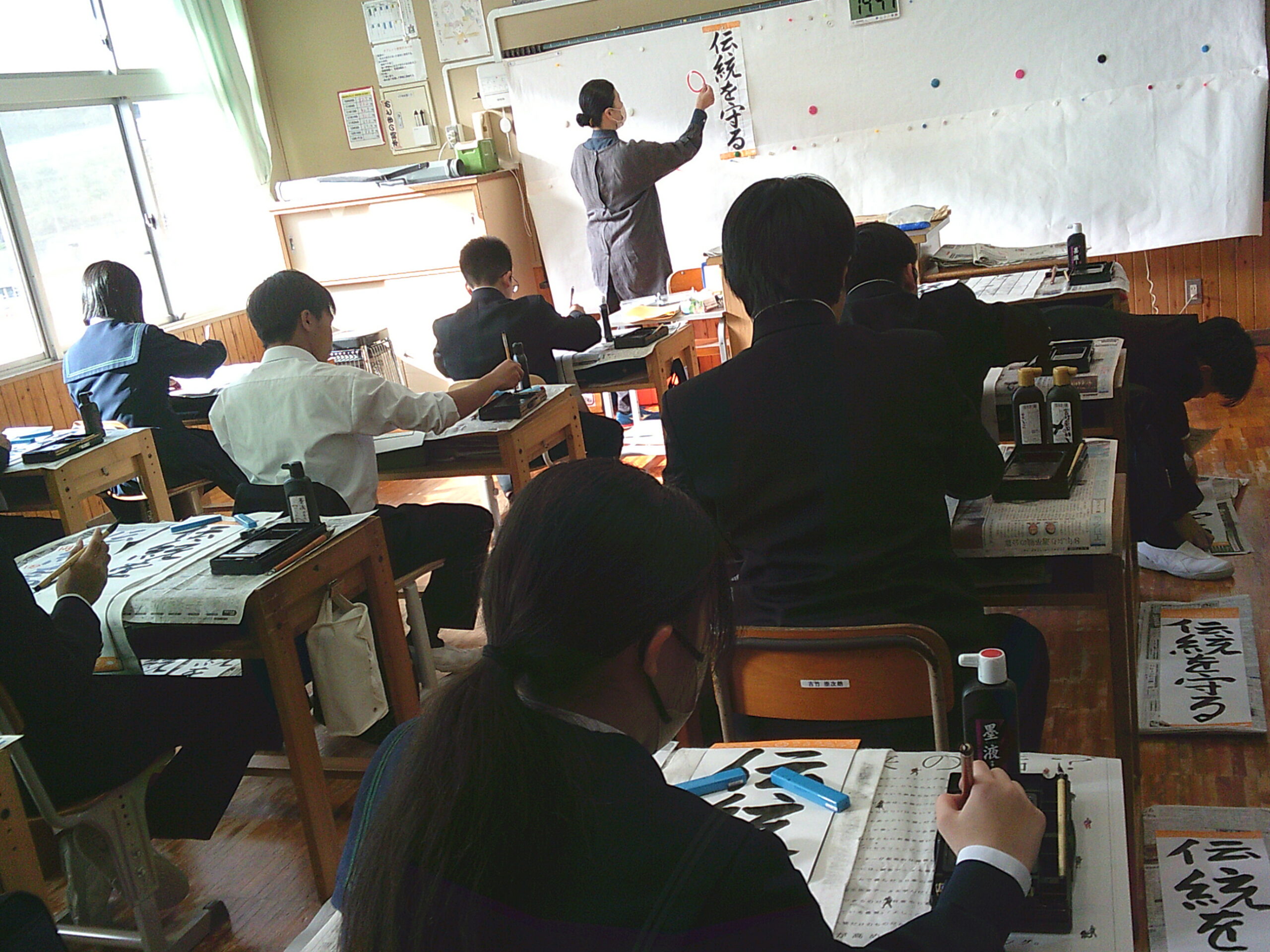 今年度も西元先生に書写をご指導いただきました。生徒一人一人に丁寧に教えていただきました。