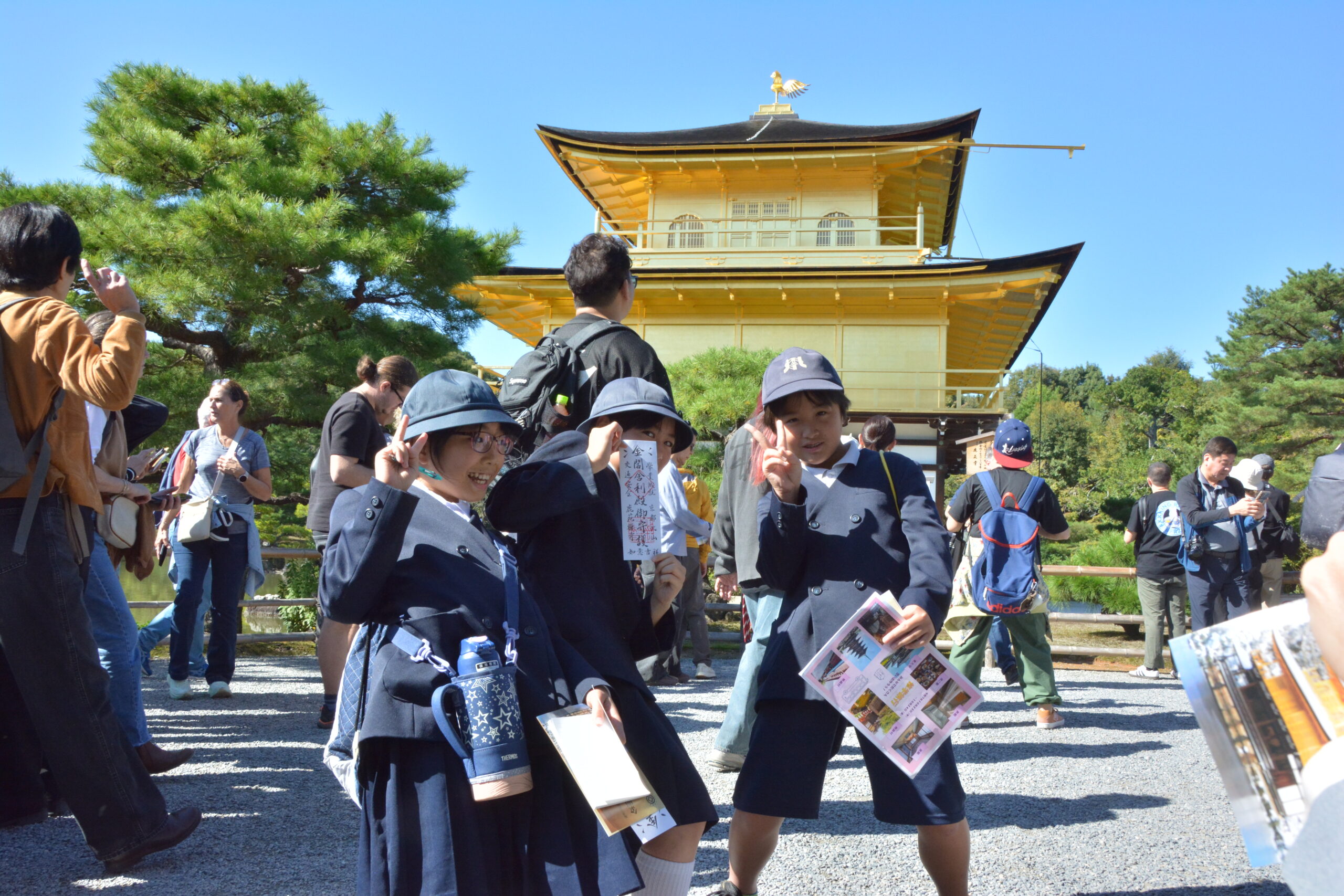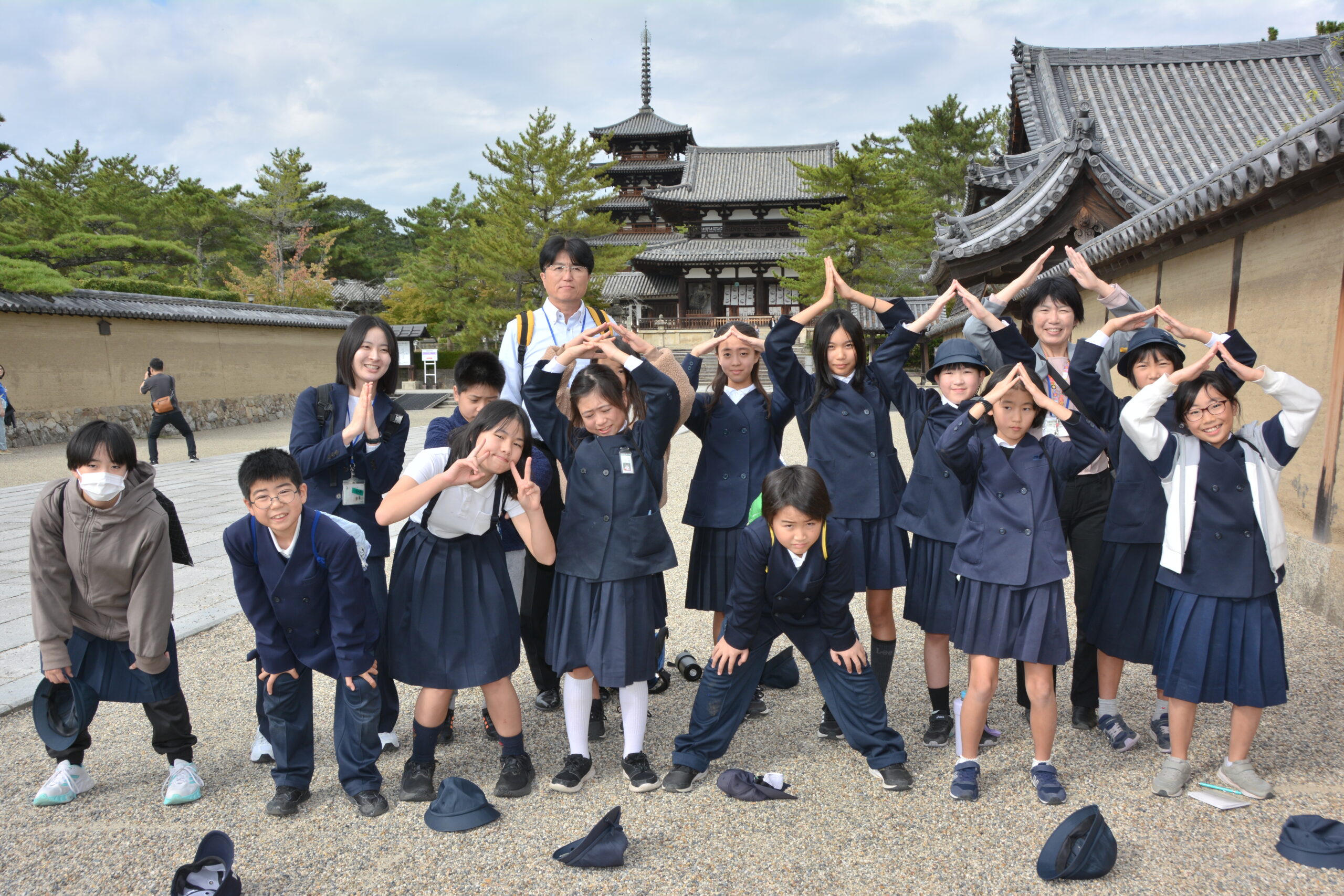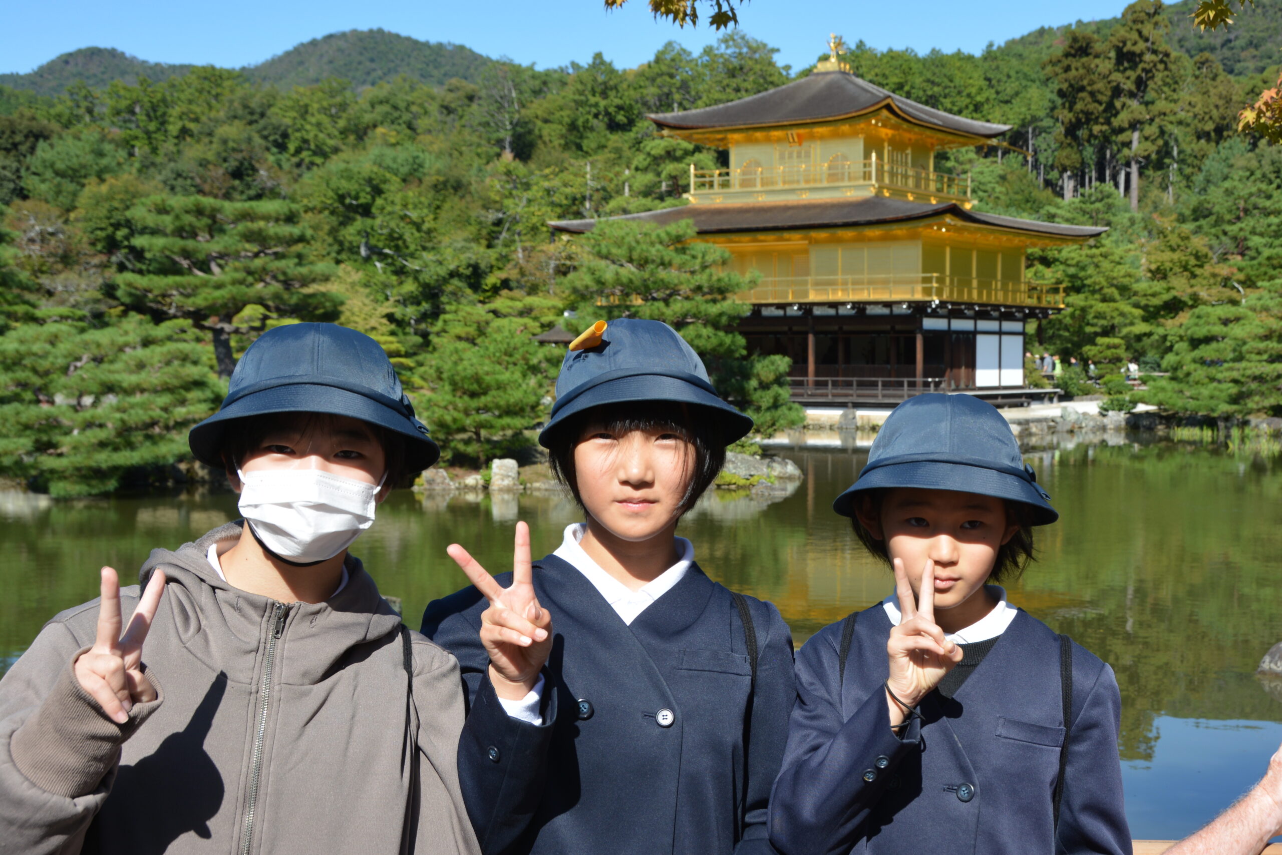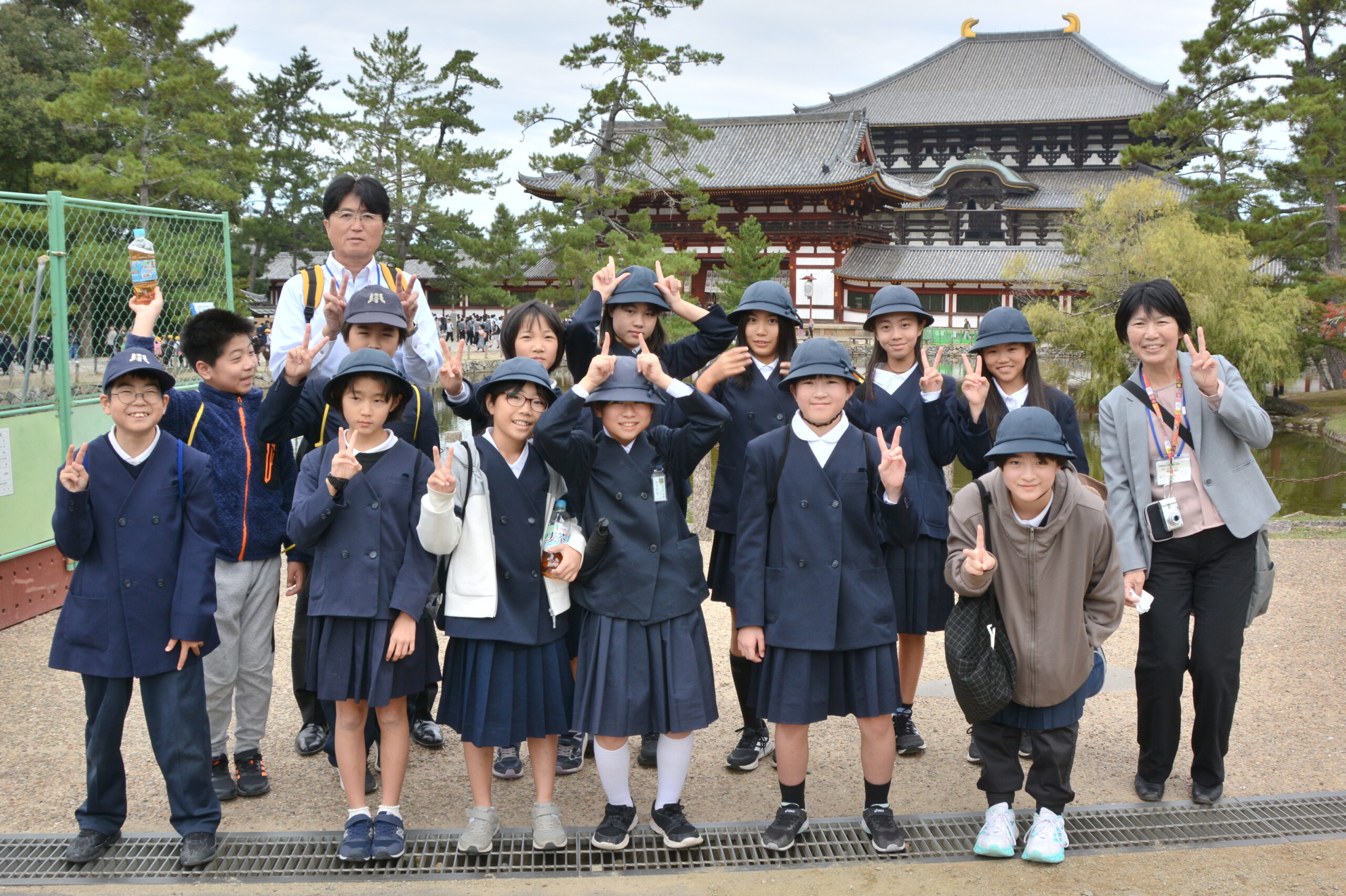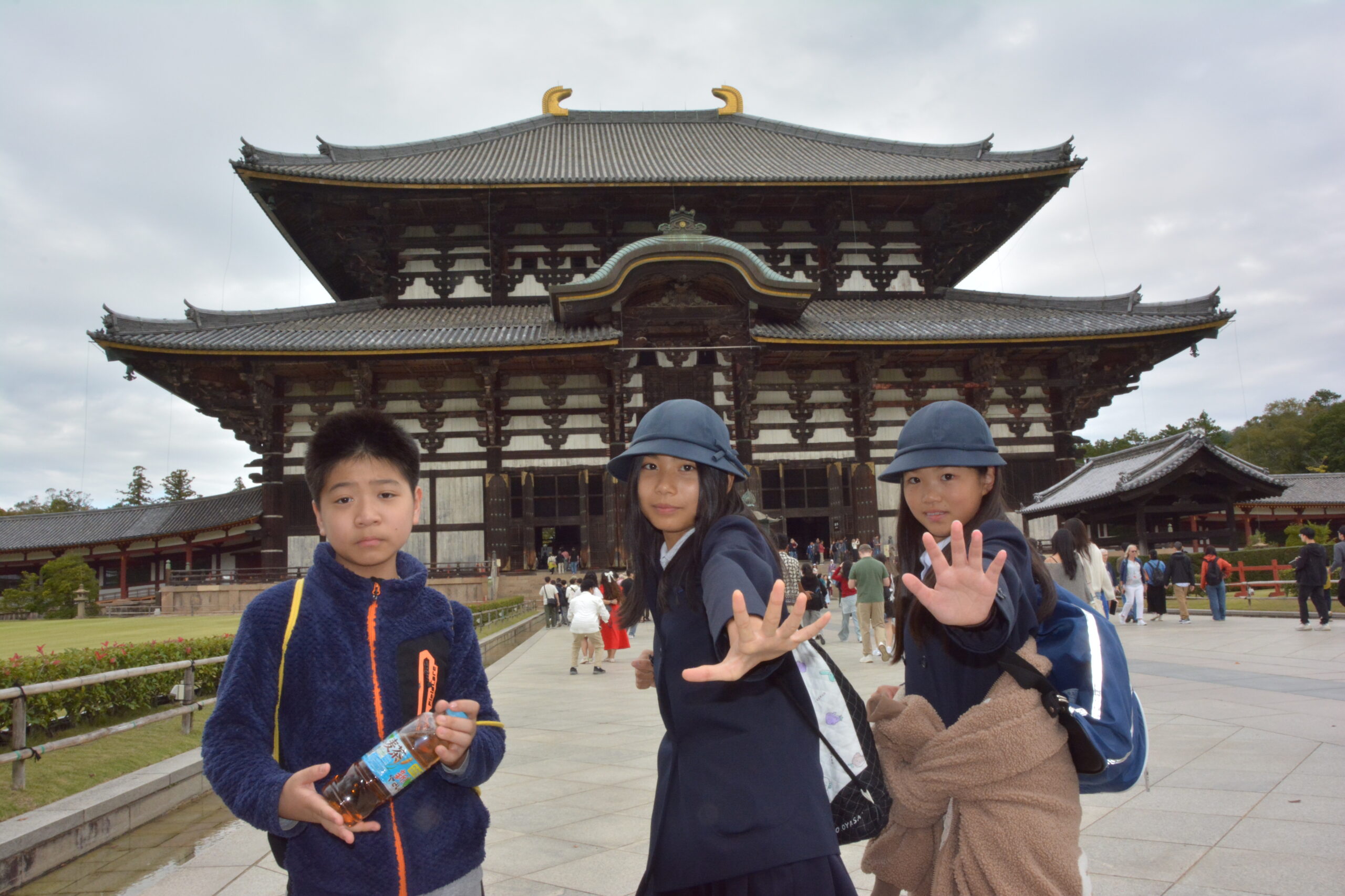 | 6年生は修学旅行に行ってきました。行先は京都・奈良方面です。金閣寺、銀閣寺、東映太秦映画村、東大寺、奈良公園、法隆寺と、歴史探訪の旅でした。行く先々で、発見あり、驚きあり、笑いありの連続でした。1泊2日の旅は、きっとよい思い出になったことでしょう。 |