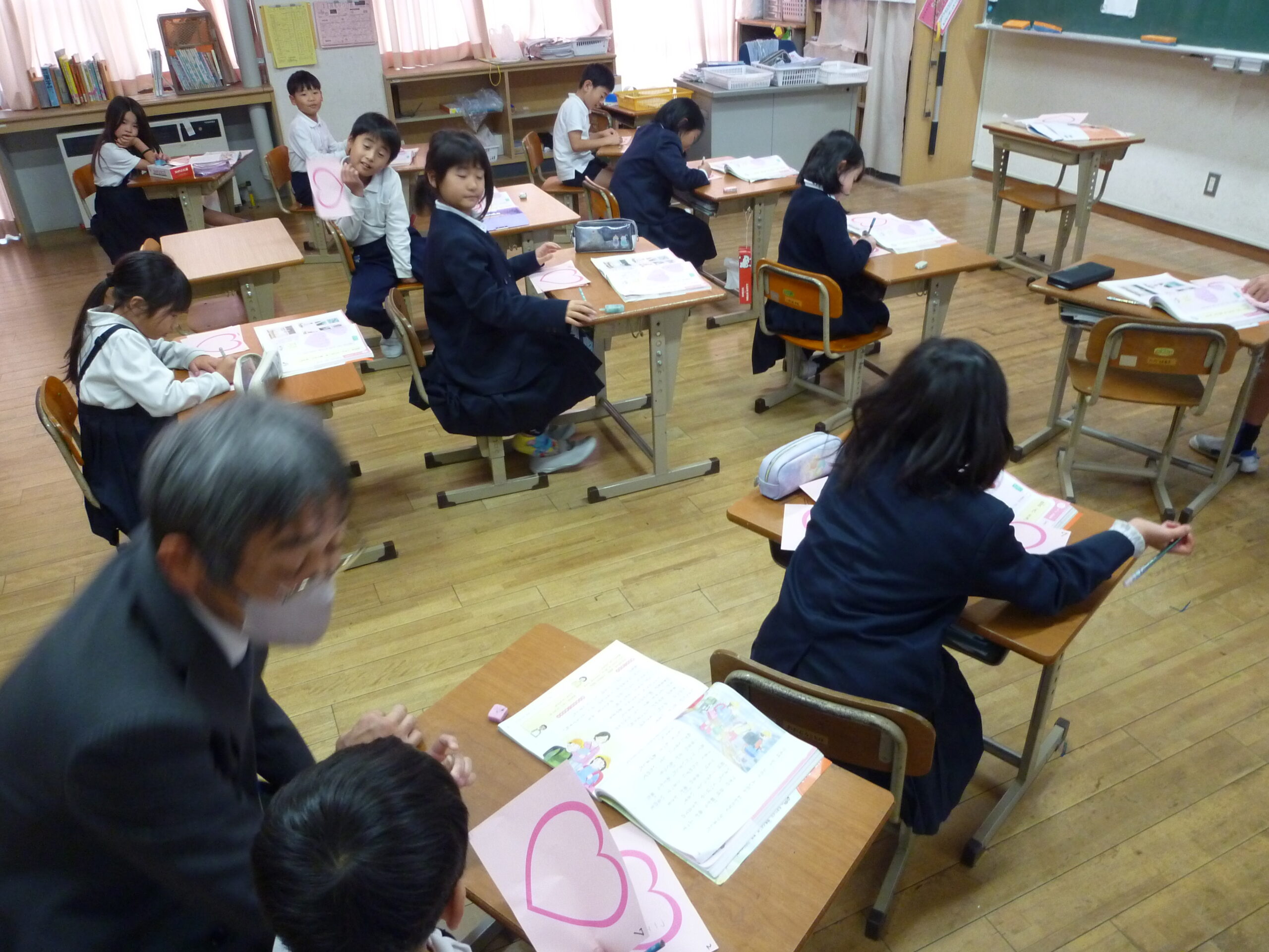 人権参観日があり、たくさんの保護者の皆さんに、子どもたちの様子を見ていただきました。人権について考えるということで、どの学年も道徳の授業を組んでいました。中には、友達や家族への感謝の気持ちを花束にして贈ったり、友達のよいところをメッセージカードに書いて渡したりといった授業風景も見られました。